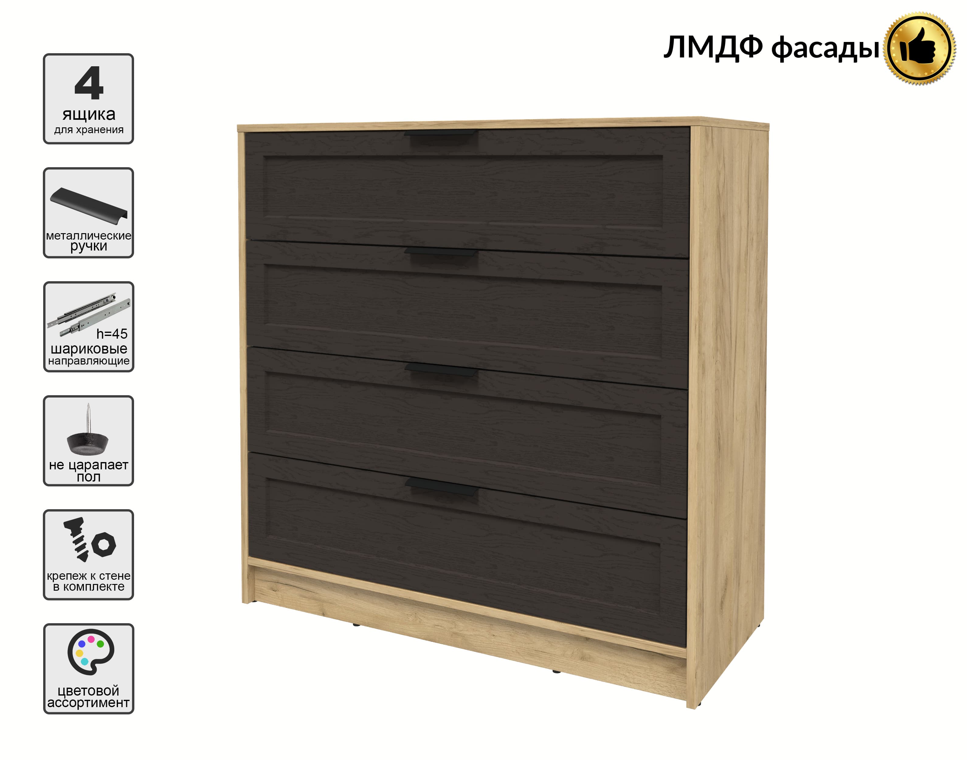 Kомод Тренд КТ-К100 (Дуб золотой ЛДСП/ Дуб английский ЛМДФ) Ш1000 В1020 Г451