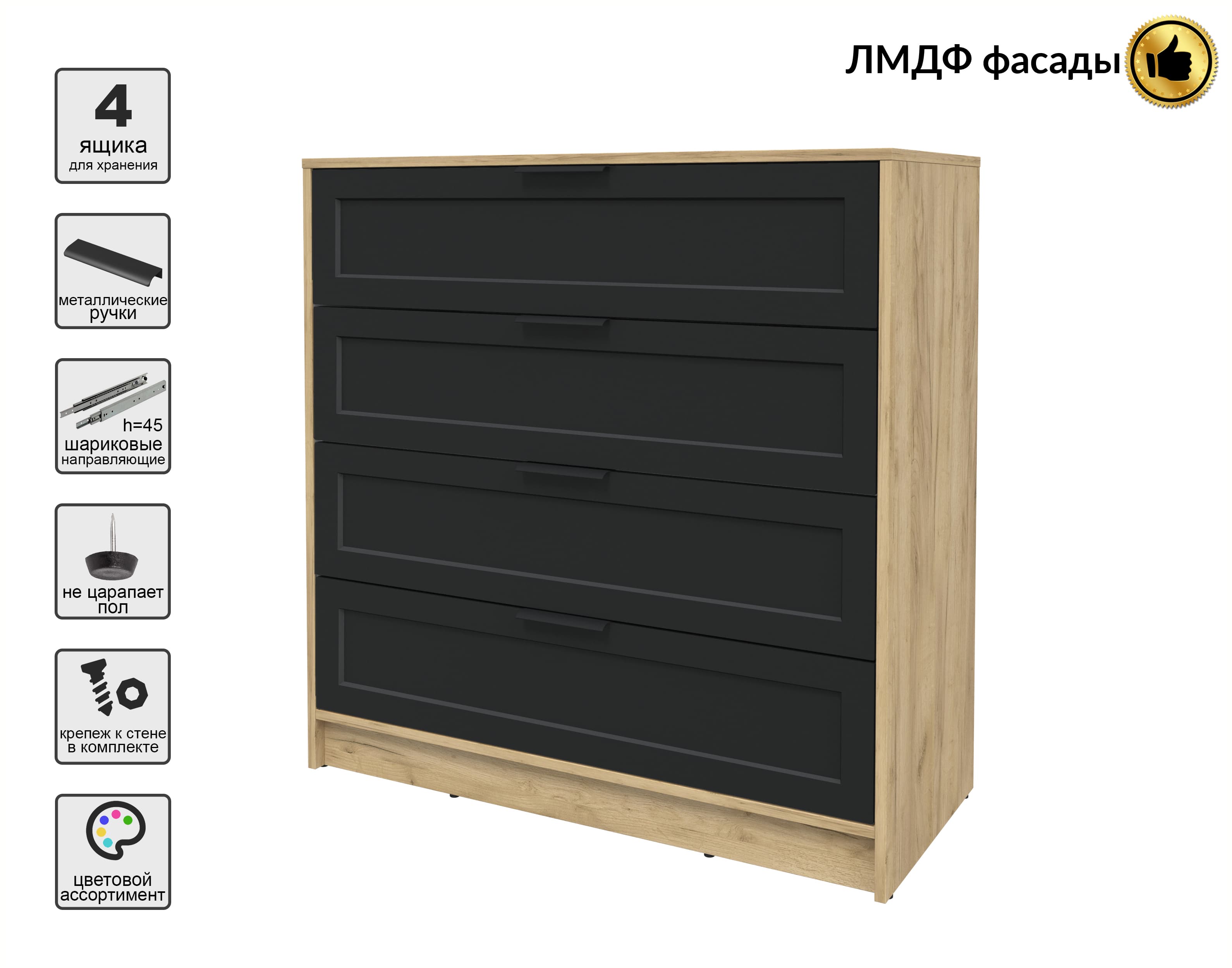 Kомод Тренд КТ-К100 (Дуб золотой ЛДСП/ Черный ЛМДФ) Ш1000 В1020 Г451