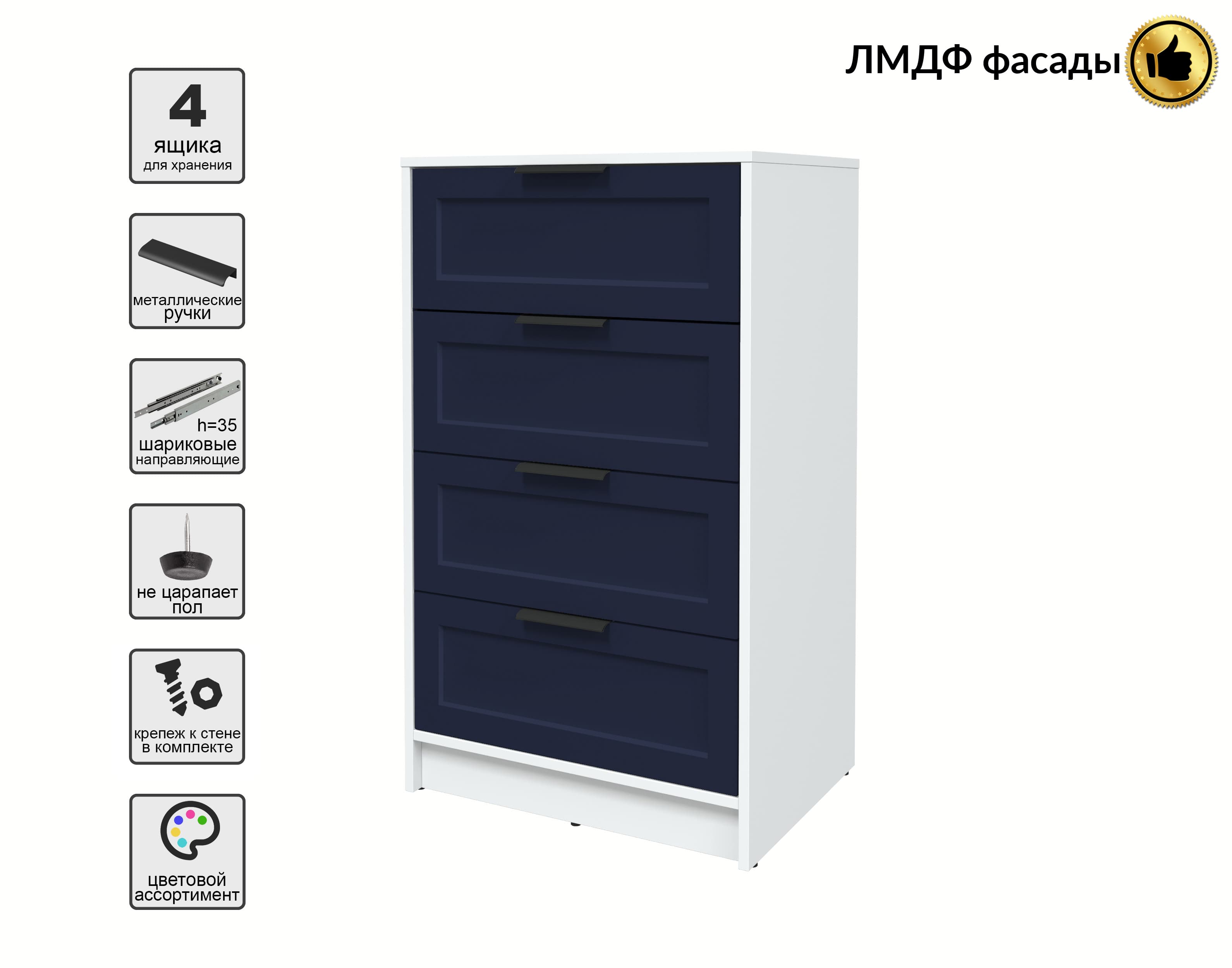 Kомод Тренд КТ-К60 (Белый ЛДСП/ Индиго ЛМДФ) Ш600 В1020 Г451