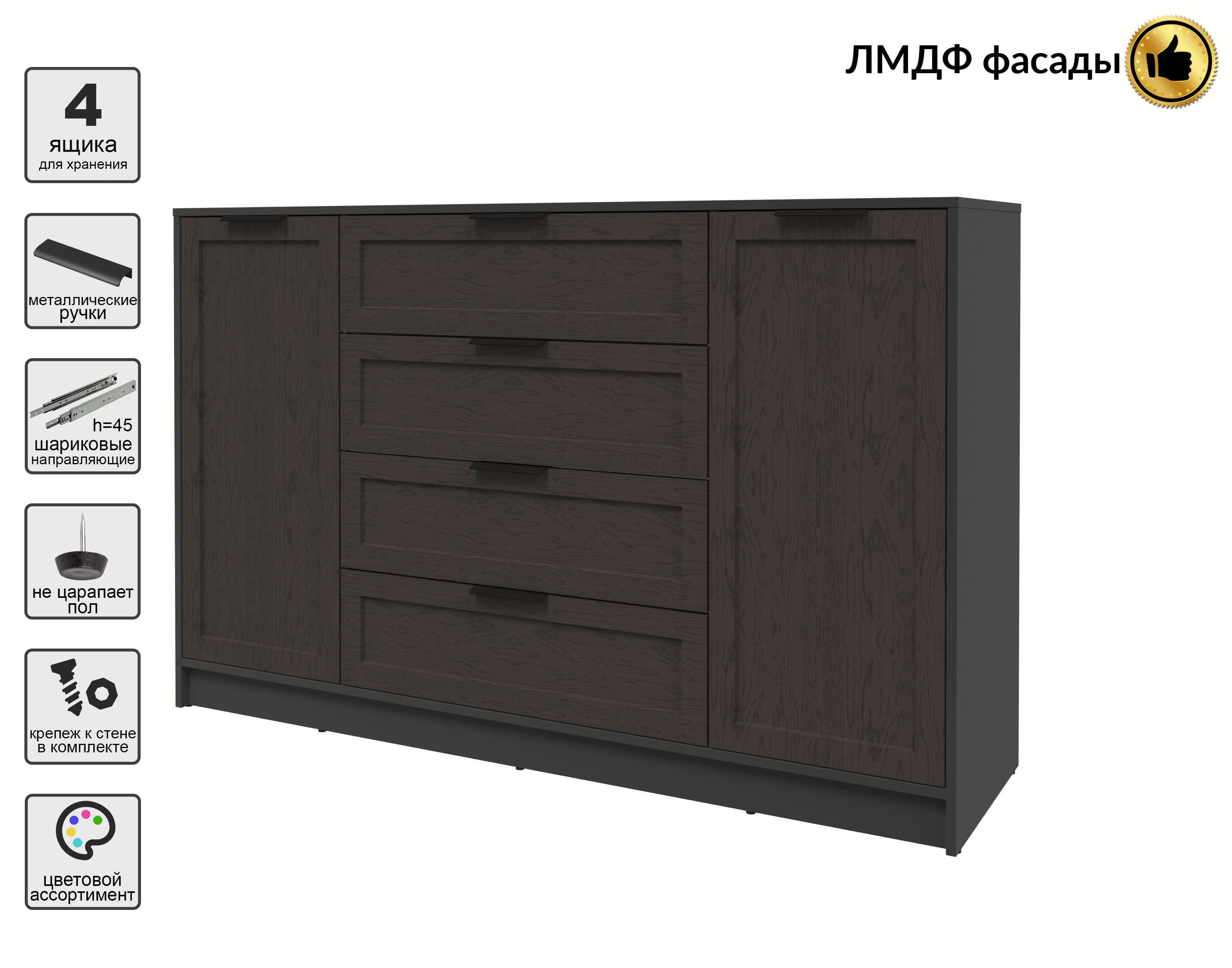 Тумба Тренд КТ-Т160 (Антрацит ЛДСП/ Дуб английский ЛМДФ) Ш1600 В1020 Г451