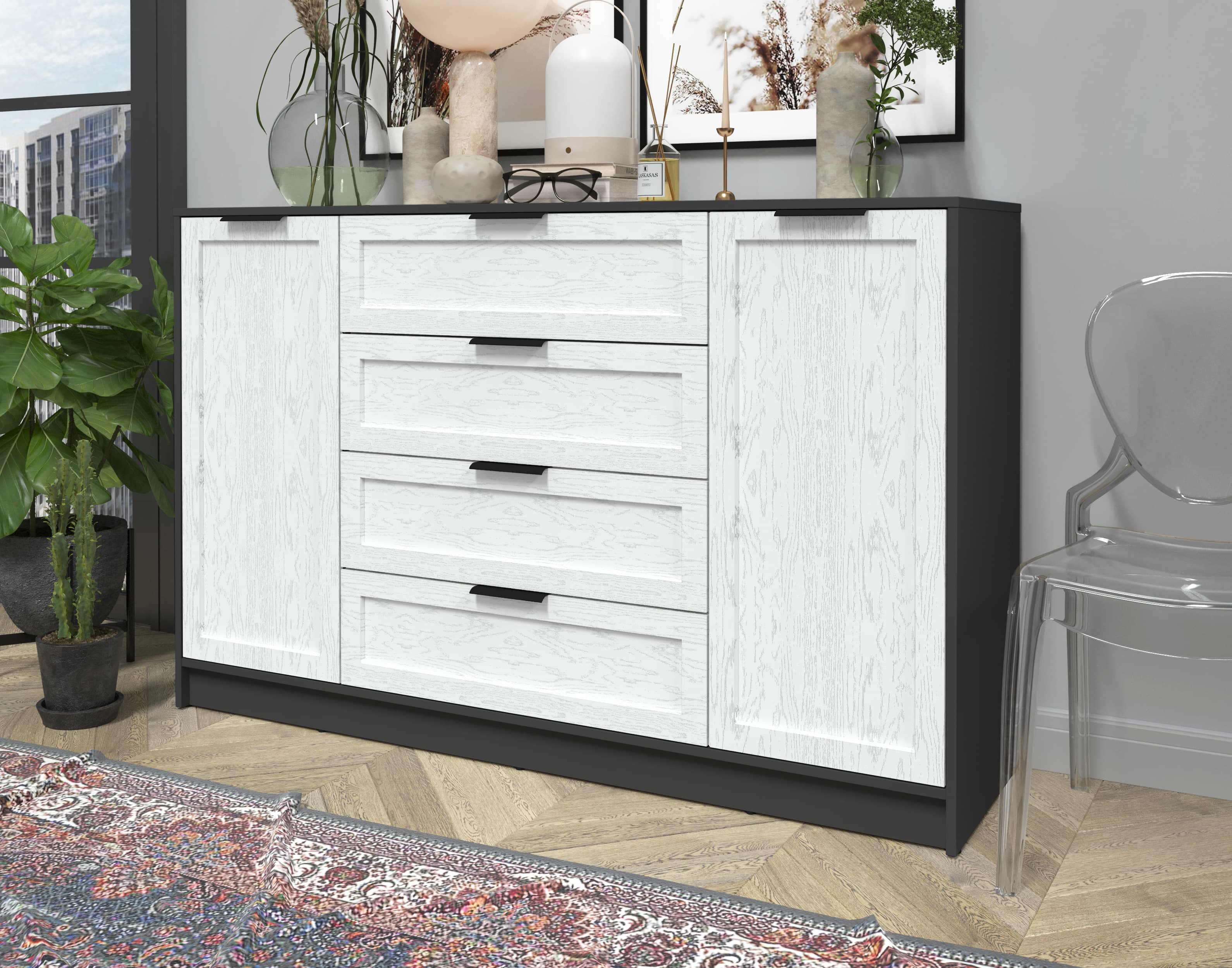 Тумба Тренд КТ-Т160 (Антрацит ЛДСП/ Дуб полярный ЛМДФ) Ш1600 В1020 Г451