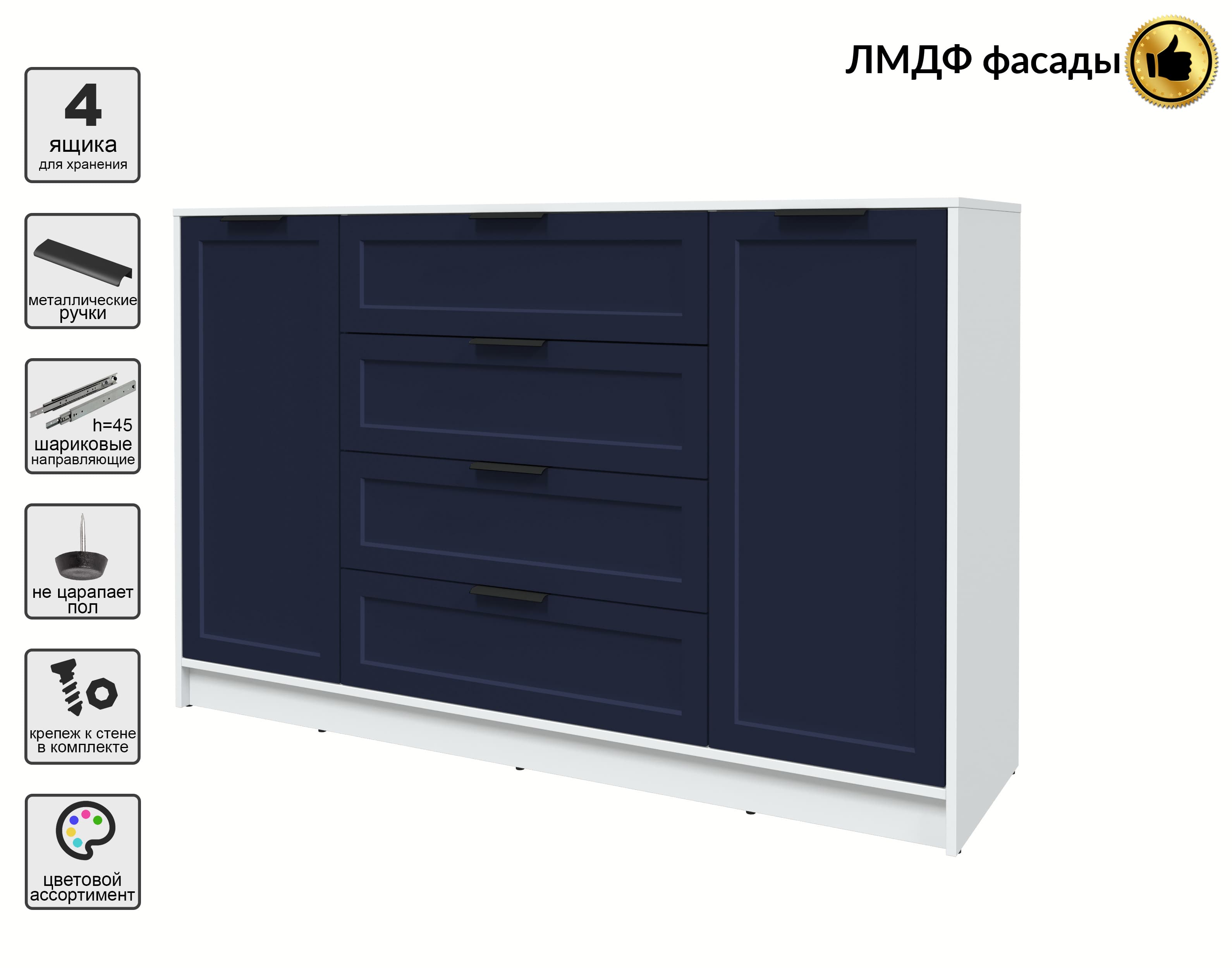 Тумба Тренд КТ-Т160 (Белый ЛДСП/ Индиго ЛМДФ) Ш1600 В1020 Г451