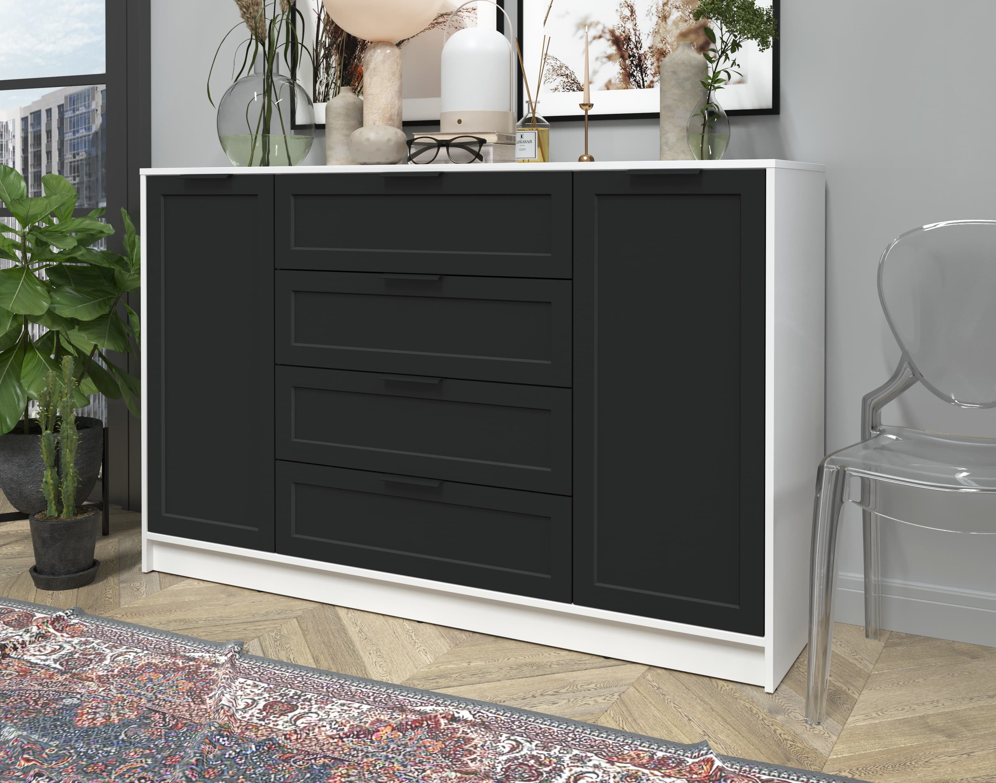 Тумба Тренд КТ-Т160 (Белый ЛДСП/ Черный ЛМДФ) Ш1600 В1020 Г451