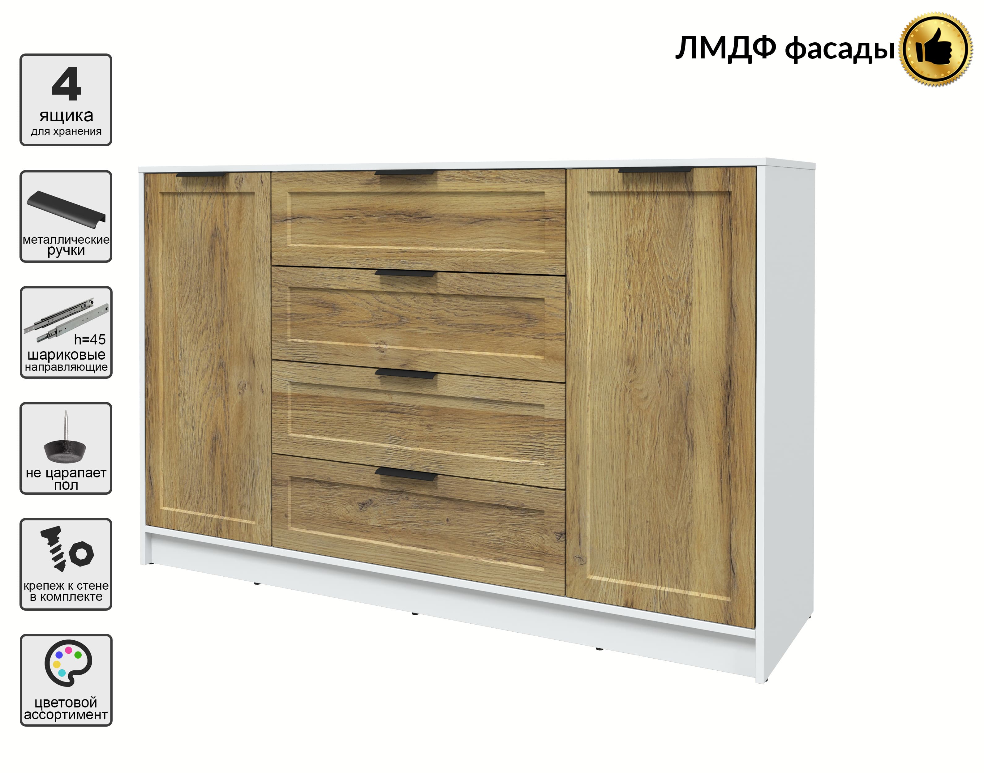 Тумба Тренд КТ-Т160 (Белый ЛДСП/ Дуб вотан ЛМДФ) Ш1600 В1020 Г451