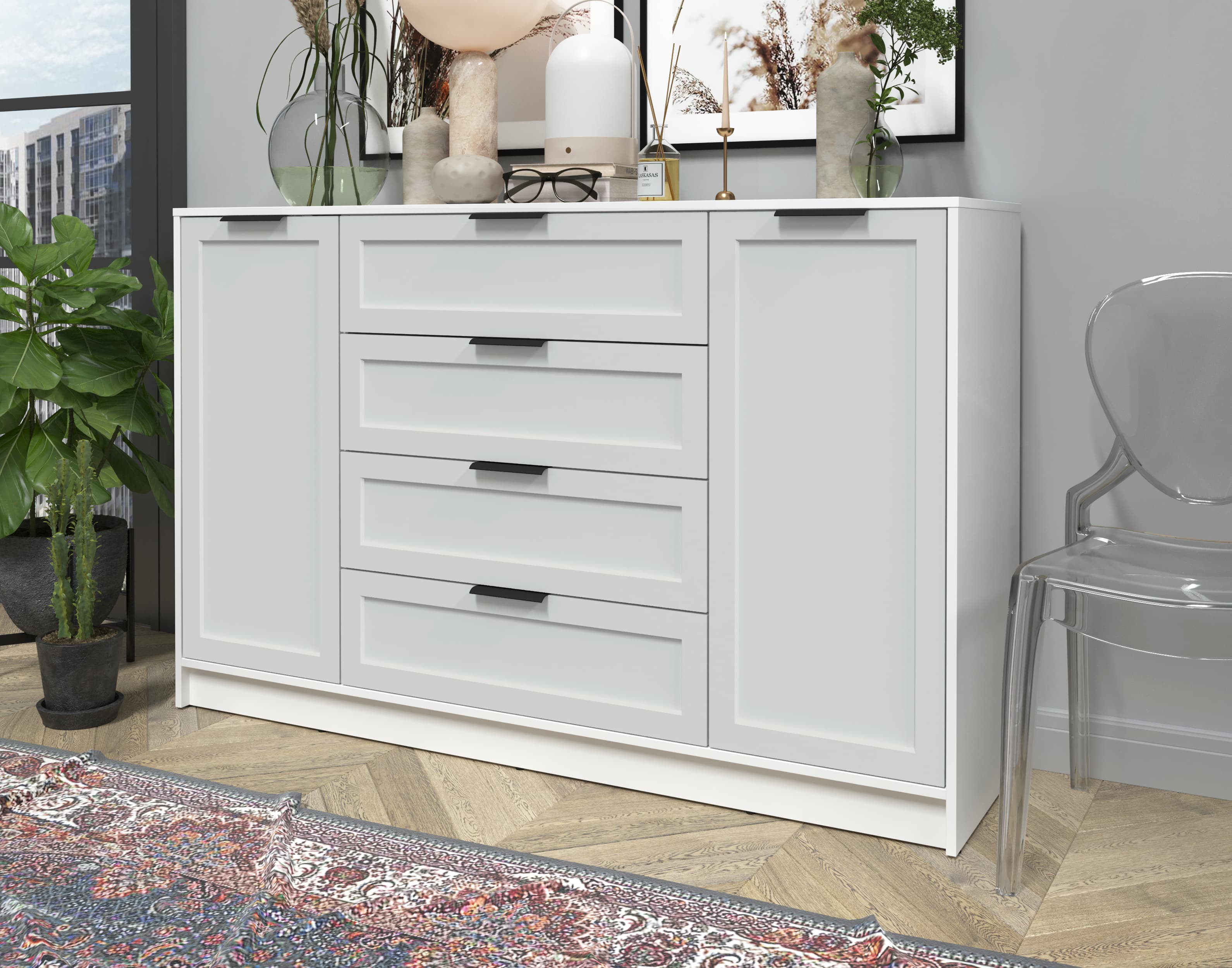 Тумба Тренд КТ-Т160 (Белый ЛДСП/ Грэй ЛМДФ) Ш1600 В1020 Г451