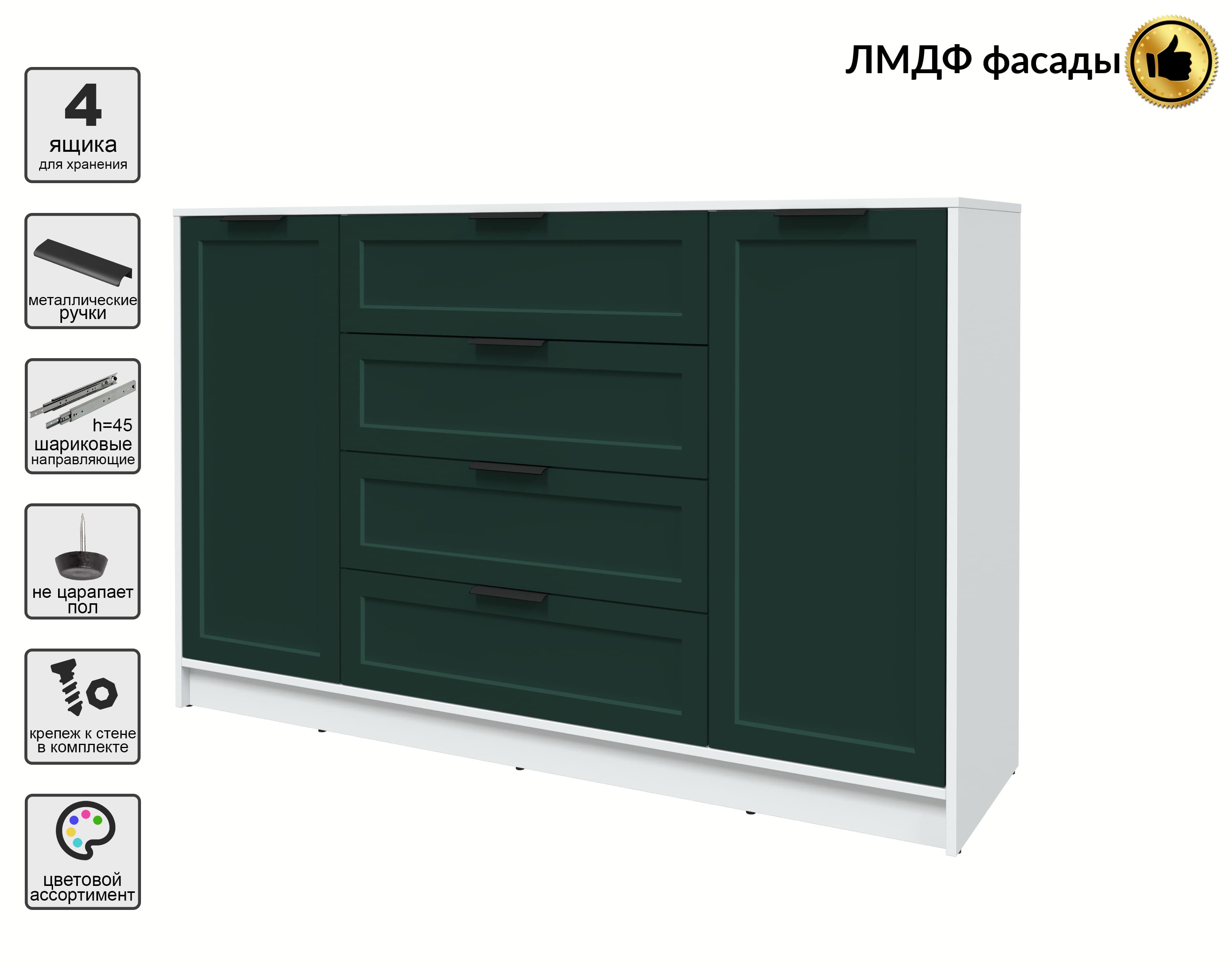 Тумба Тренд КТ-Т160 (Белый ЛДСП/ Изумруд ЛМДФ) Ш1600 В1020 Г451
