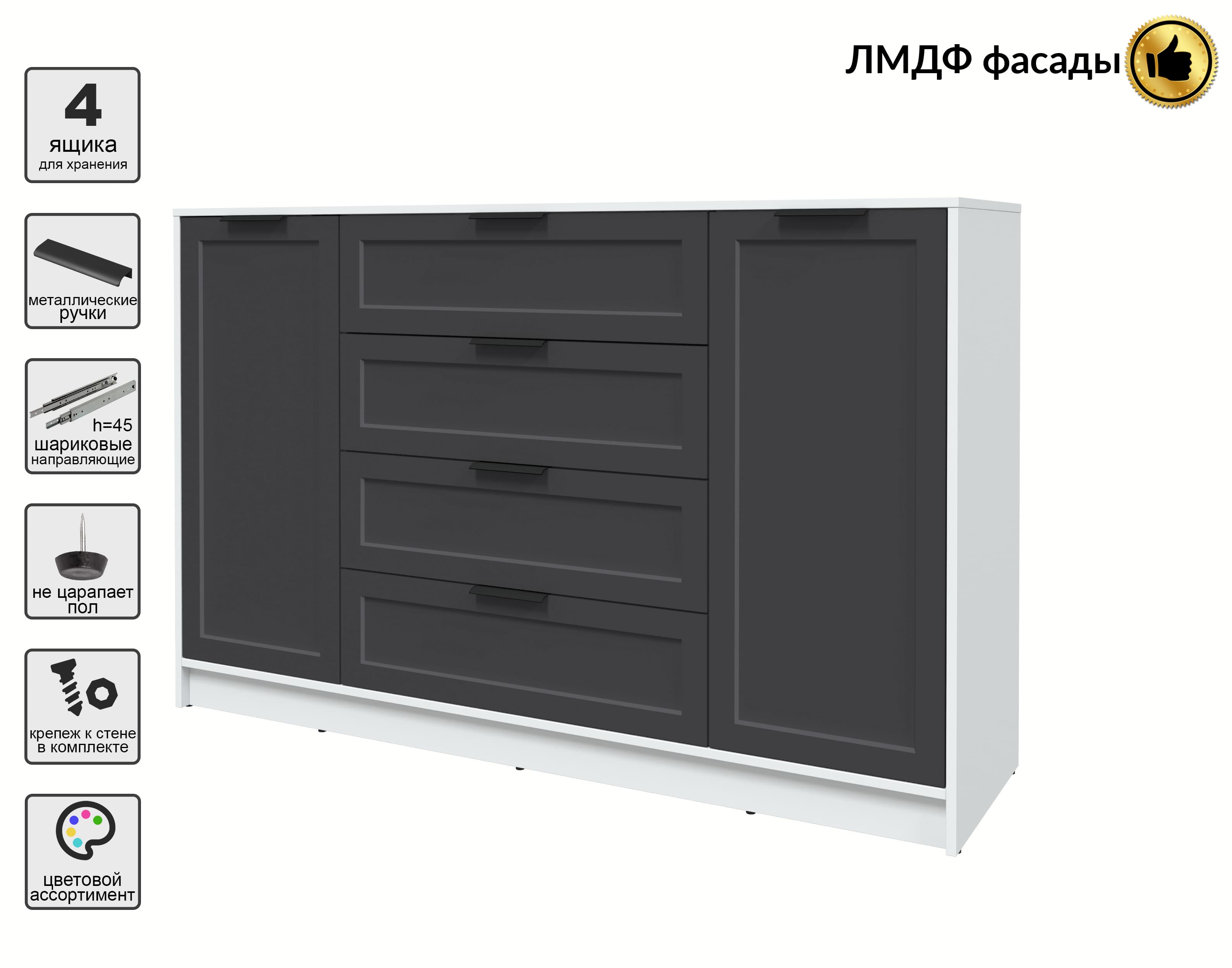 Тумба Тренд КТ-Т160 (Белый ЛДСП/ Пепел ЛМДФ) Ш1600 В1020 Г451