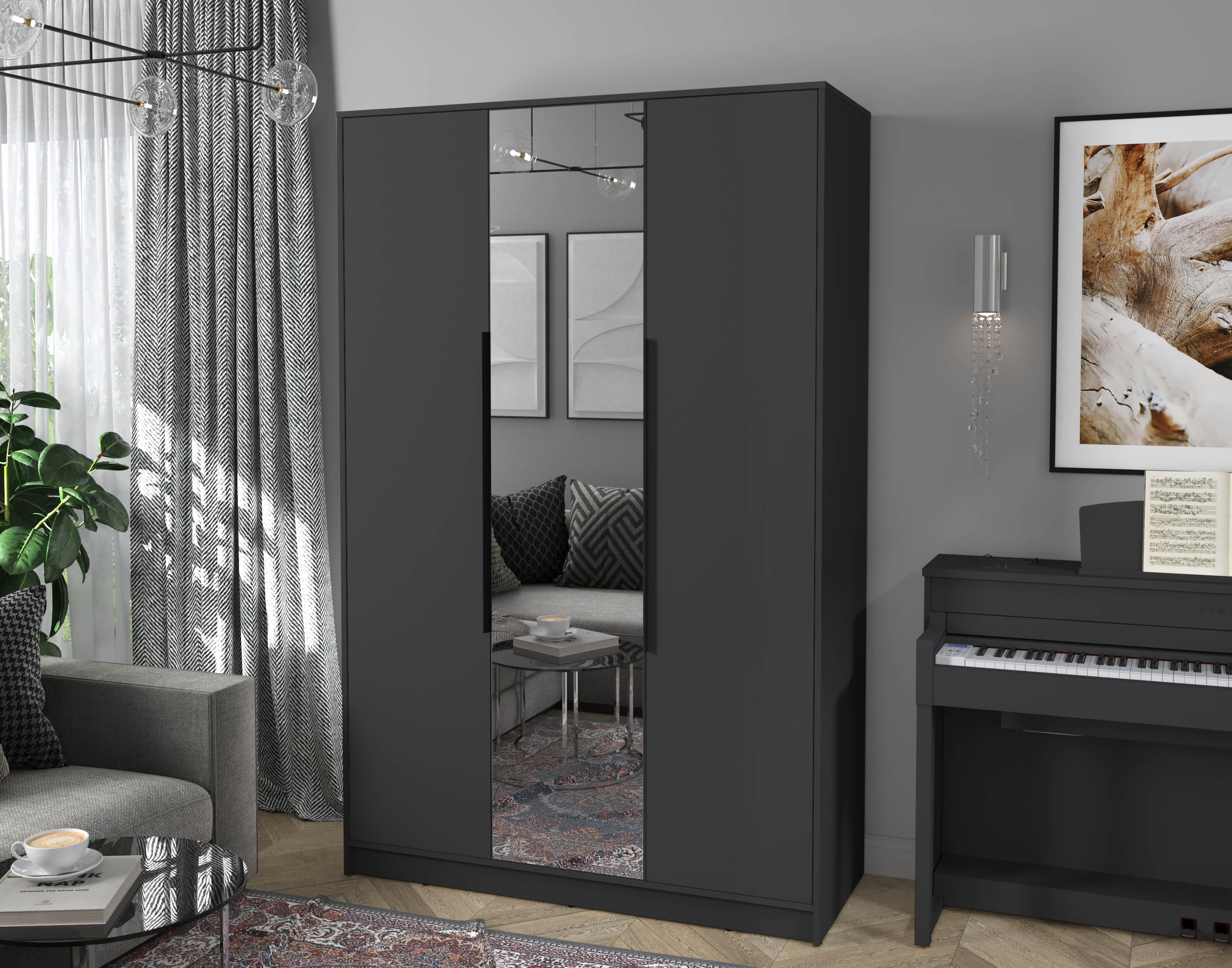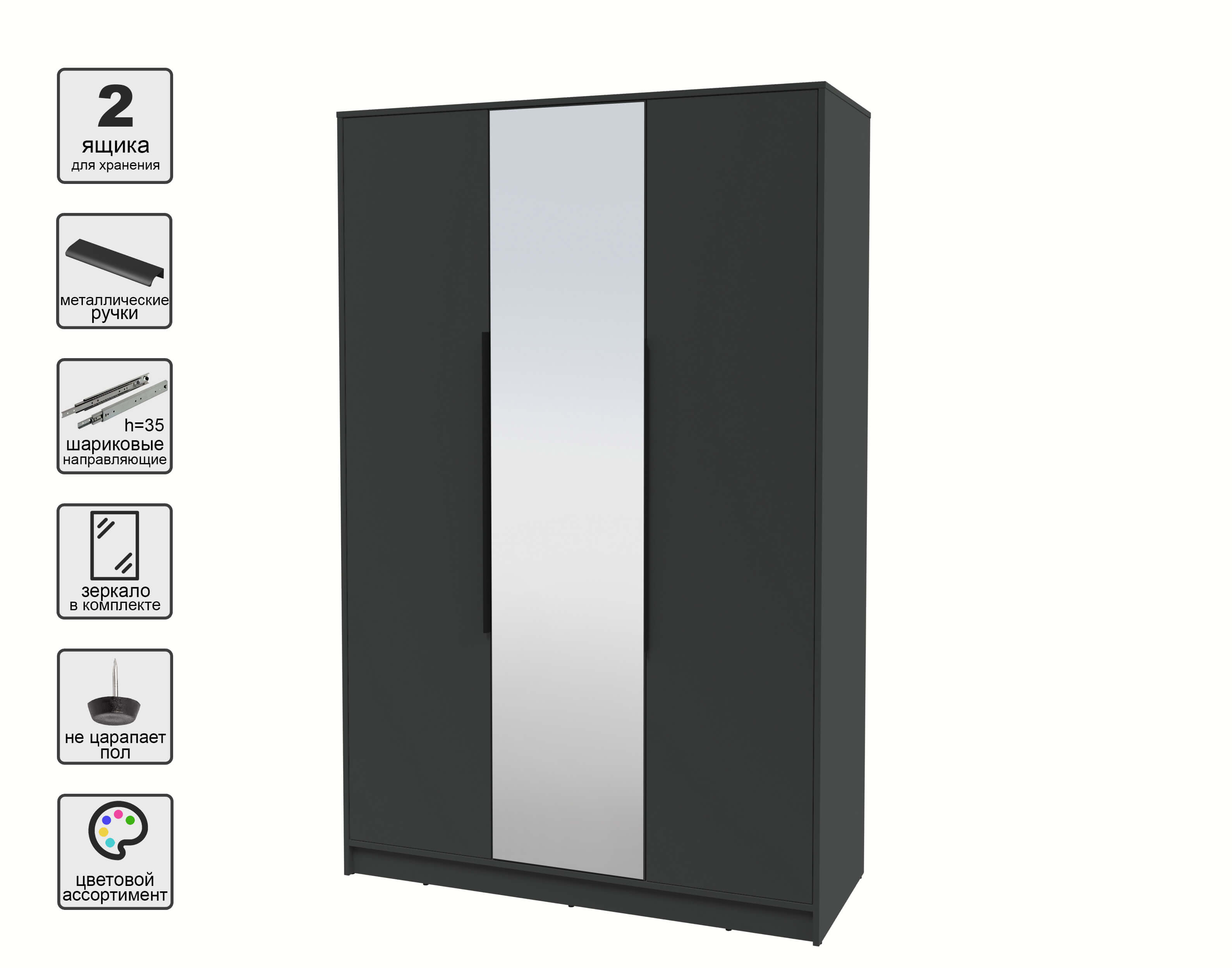 Шкаф распашной КТ-Ш3(з) (Антрацит ЛДСП/ Антрацит ЛДСП) Ш1360 В2128 Г547