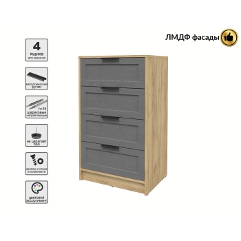 Kомод Тренд КТ-К60 (Антрацит ЛДСП/ Дуб серый ЛМДФ) Ш600 В1020 Г451