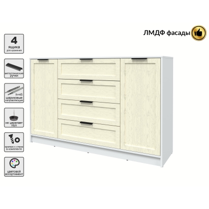 Тумба Тренд КТ-Т160 (Белый ЛДСП/ Белый ЛМДФ) Ш1600 В1020 Г451