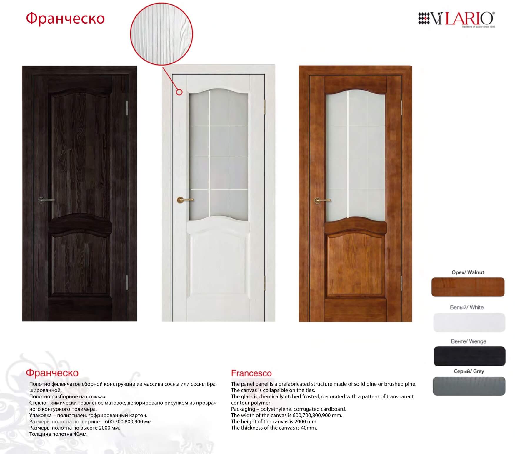 Двери комплектуются как плоским наличником, так и декоративными элементами обрамления (розетка, карниз, цоколь).
