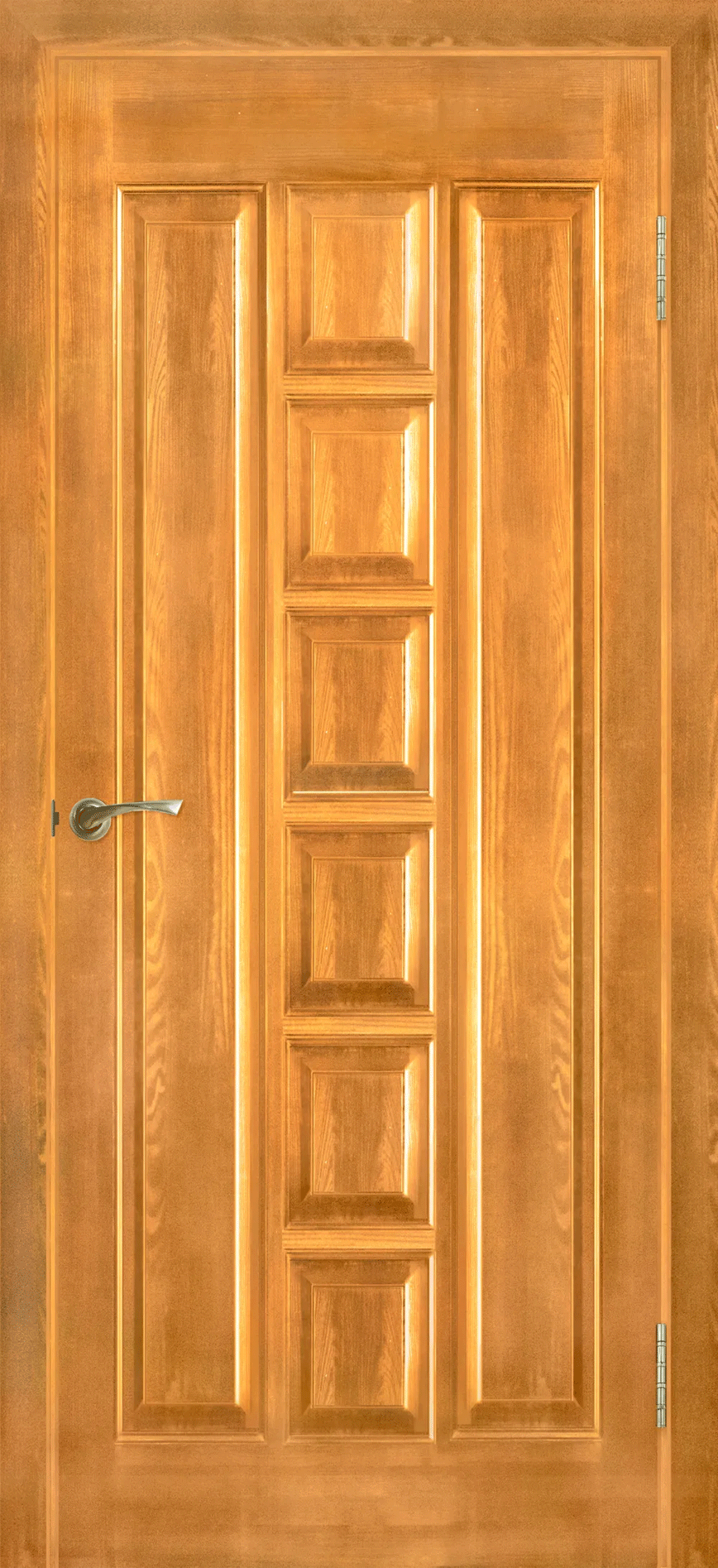При изготовлении дверей из массива используются натуральная древесина преимущественно твердых пород: дуб, ольха, сосна. Это обеспечивает устойчивость к механическим повреждениям. Особое внимание уделяется сохранению неповторимой структуры и уникальному рисунку древесины.