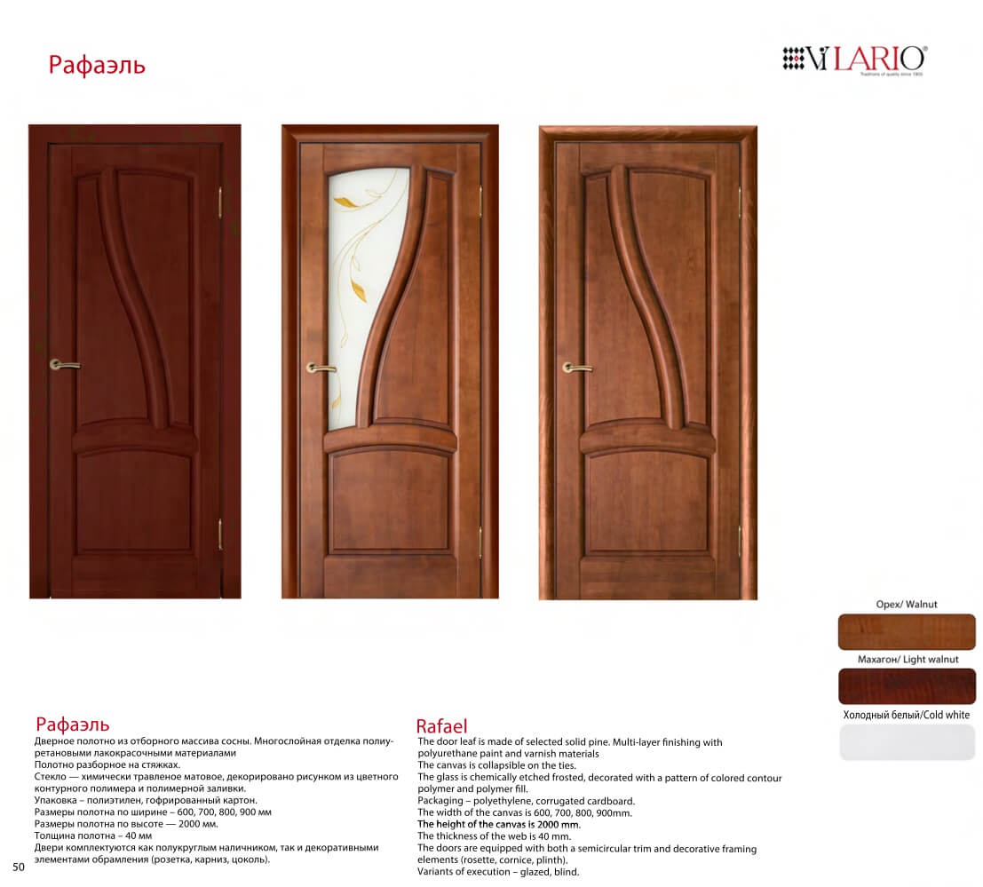 Дверное полотно из отборного массива сосны. Многослойная отделка полиуретановыми лакокрасочными материалами