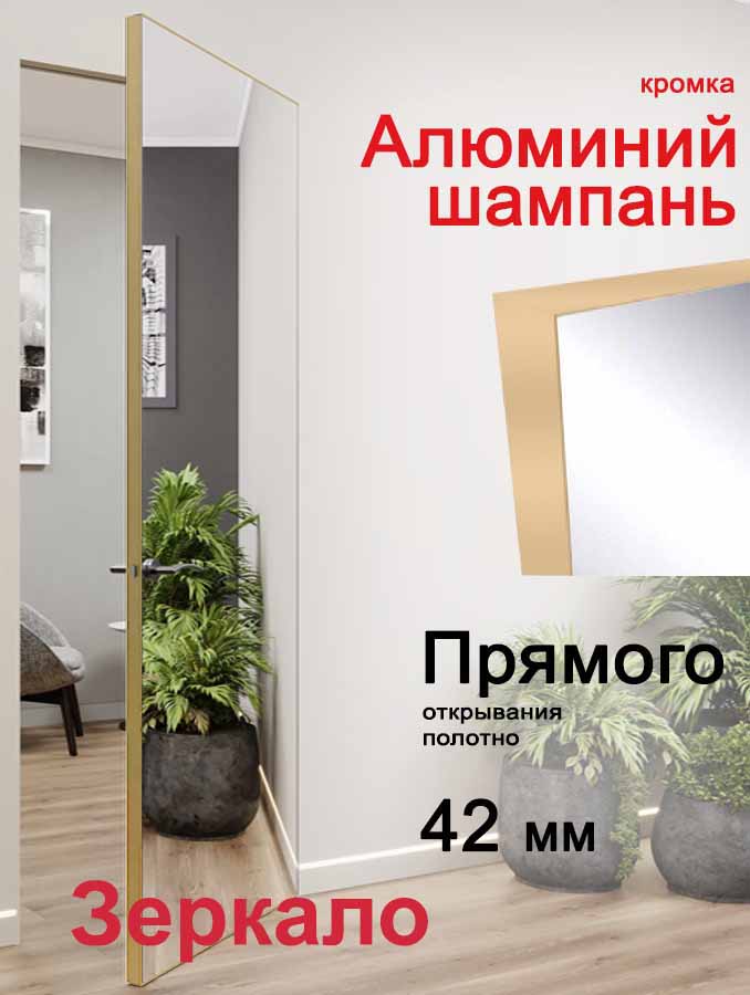 Дверь-невидимка Зеркало INVISIBLE (под покраску, кромка Алюминий Шампань)