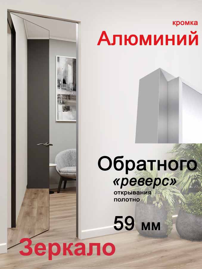 Дверь-невидимка Зеркало INVISIBLE-REVERSE/ Открывание внутрь (под покраску, кромка Алюминий)