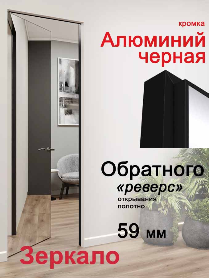 Дверь-невидимка Зеркало INVISIBLE-REVERSE/ Открывание внутрь (под покраску, кромка Алюминий Черная)