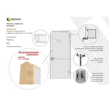 - при размере более 900х2000 мм комплектуется дополнительная петля с врезкой;