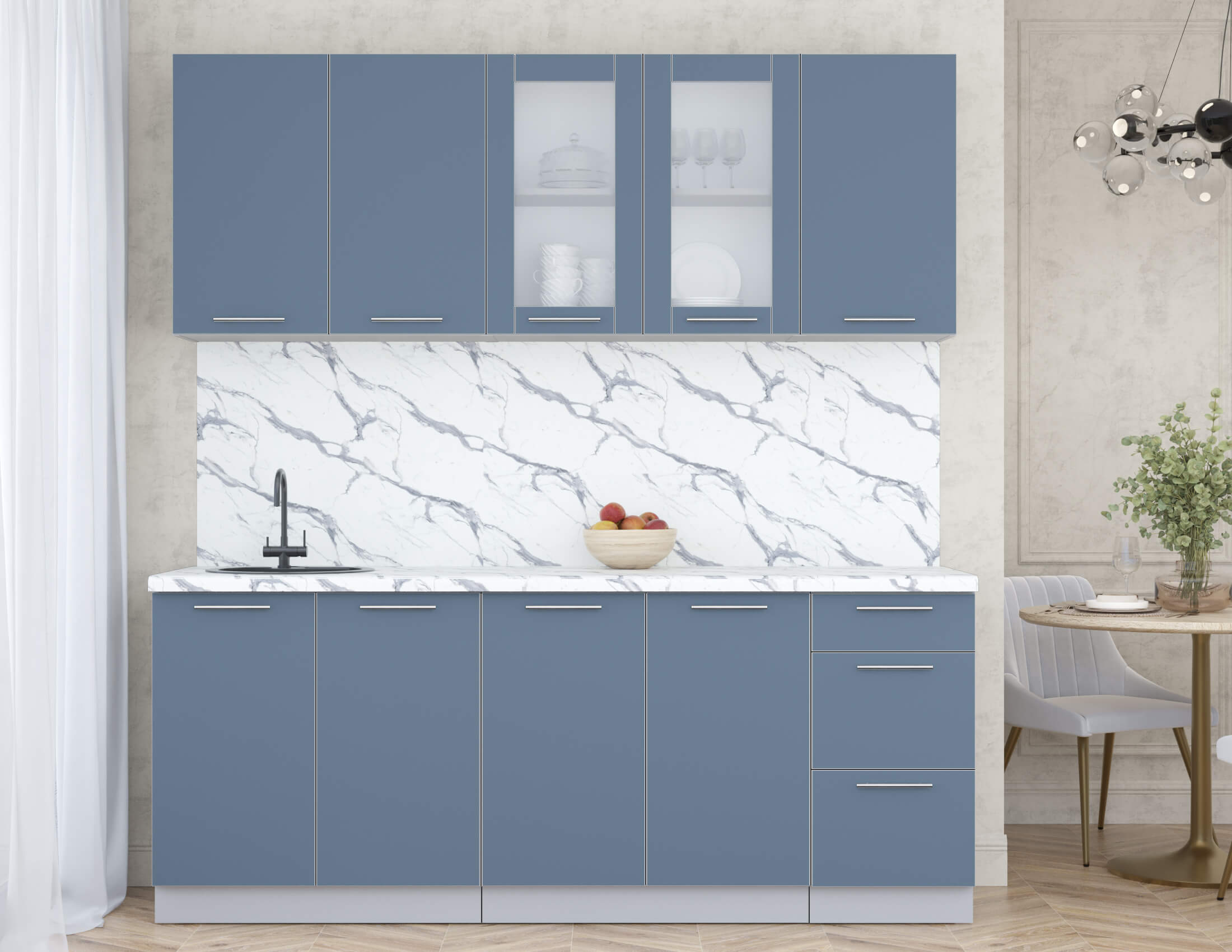 Готовая кухня ПЛАСТИК 2,0Б (Арктический/ Арктический)
