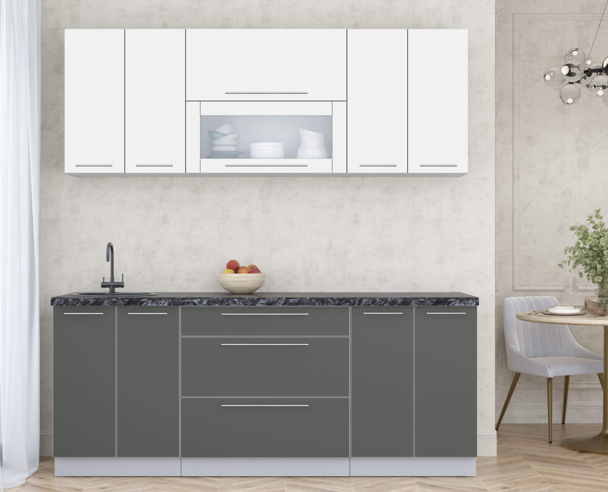 Готовая кухня ПЛАСТИК 2,0В (Зефирный/ Шторм)