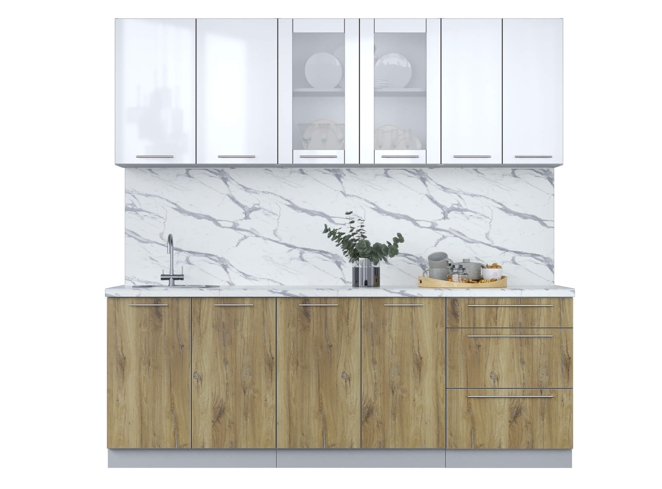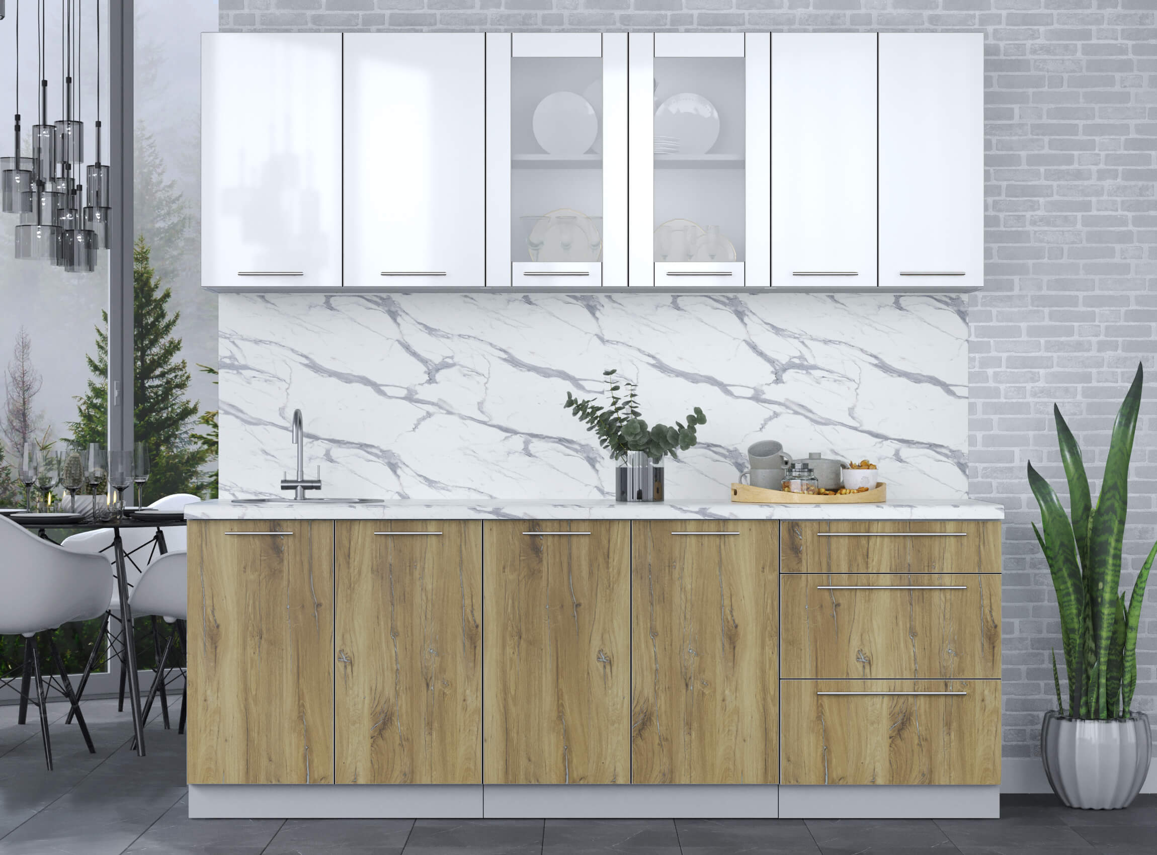 Готовая кухня ПЛАСТИК 2,2Б (Белый глянец/ Дуб эпоксид)