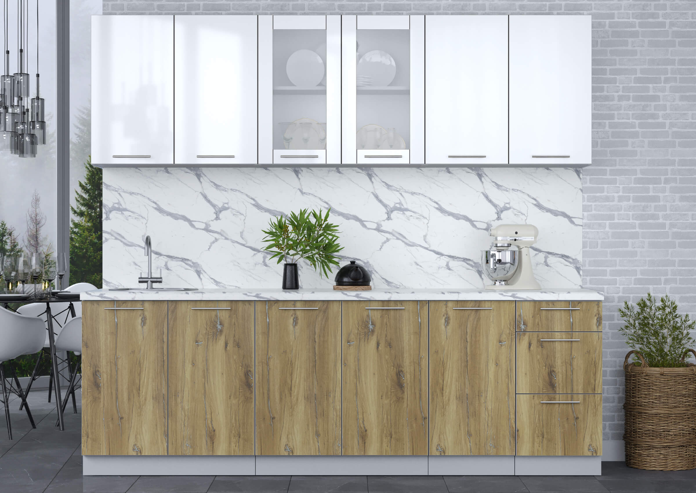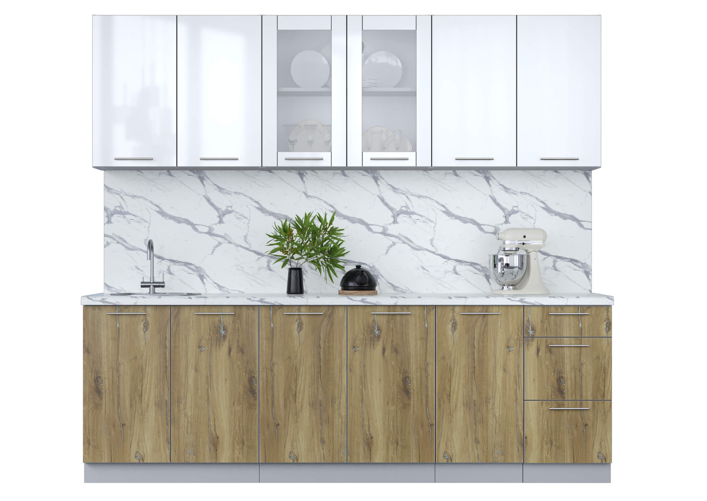 Готовая кухня ПЛАСТИК 2,4Б (Белый глянец/ Дуб эпоксид)