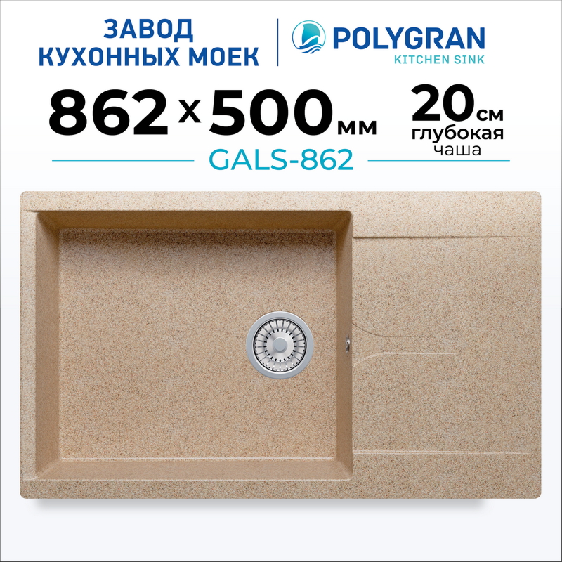 Мойка кухонная POLYGRAN GALS 862 (песочный №302)