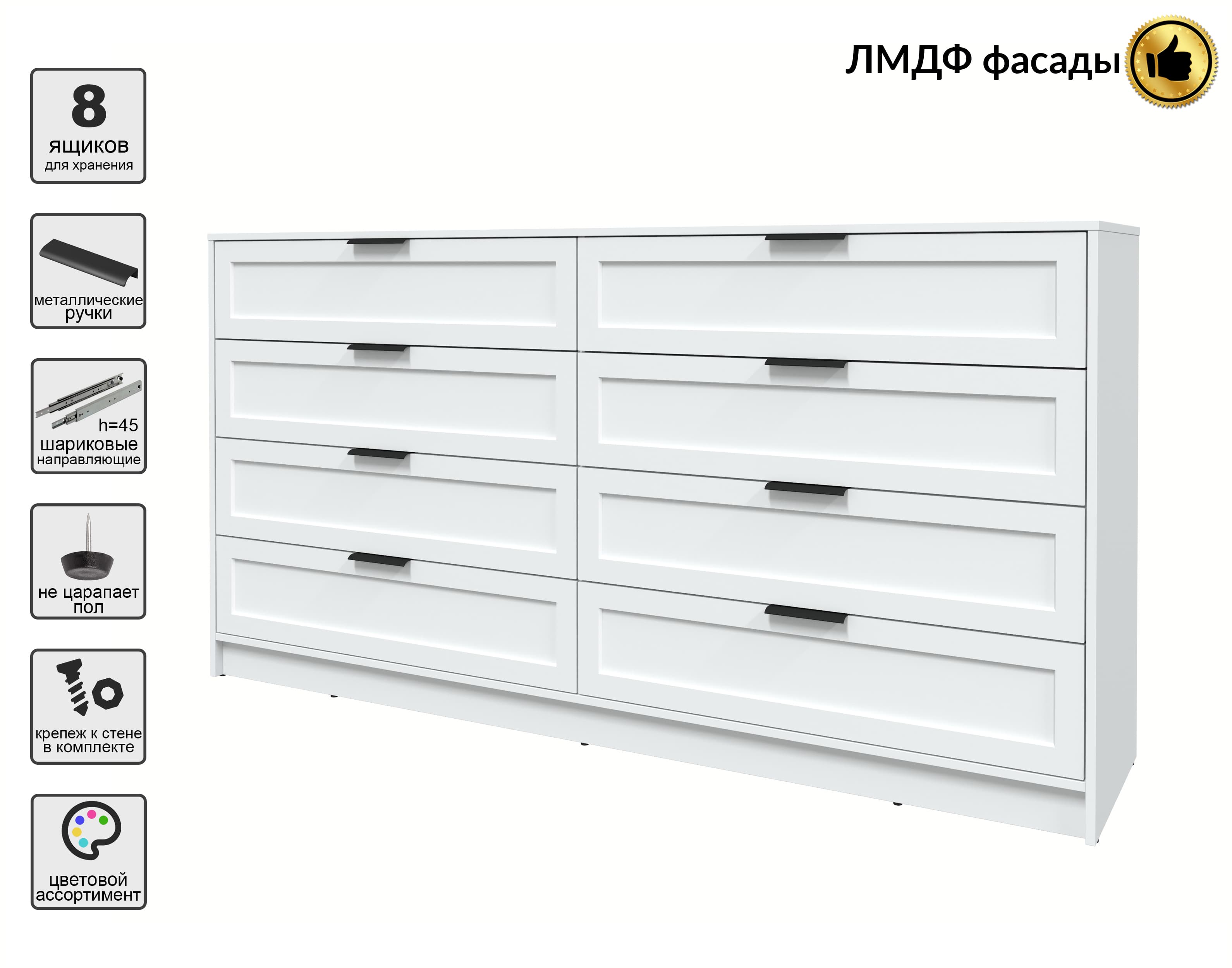 Kомод Тренд КТ-К197 (Белый ЛДСП/ Белый ЛМДФ) Ш1965 В1020 Г451