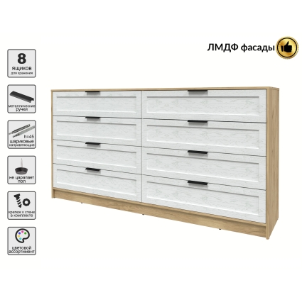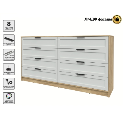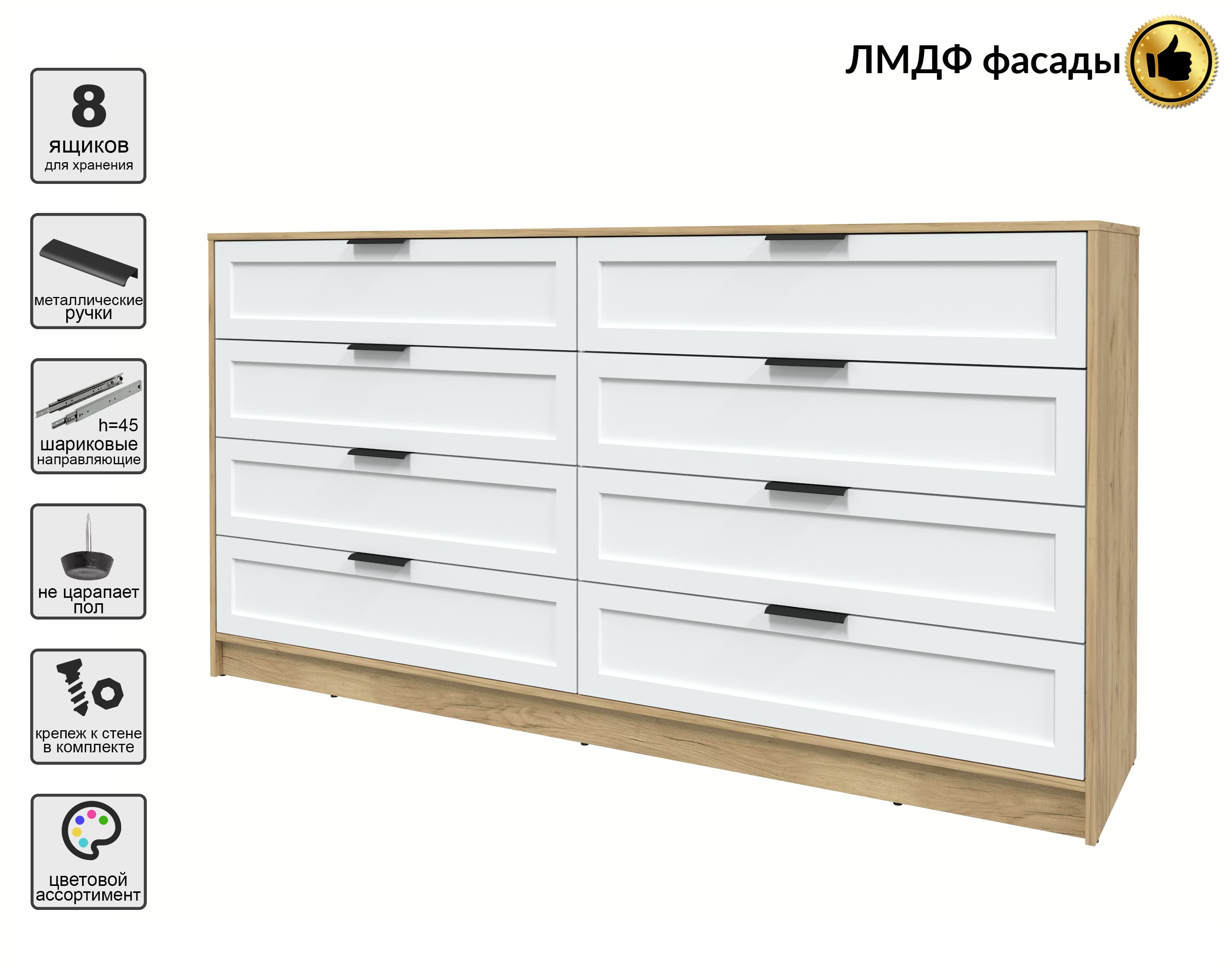 Kомод Тренд КТ-К197 (Дуб золотой ЛДСП/ Белый ЛМДФ) Ш1965 В1020 Г451