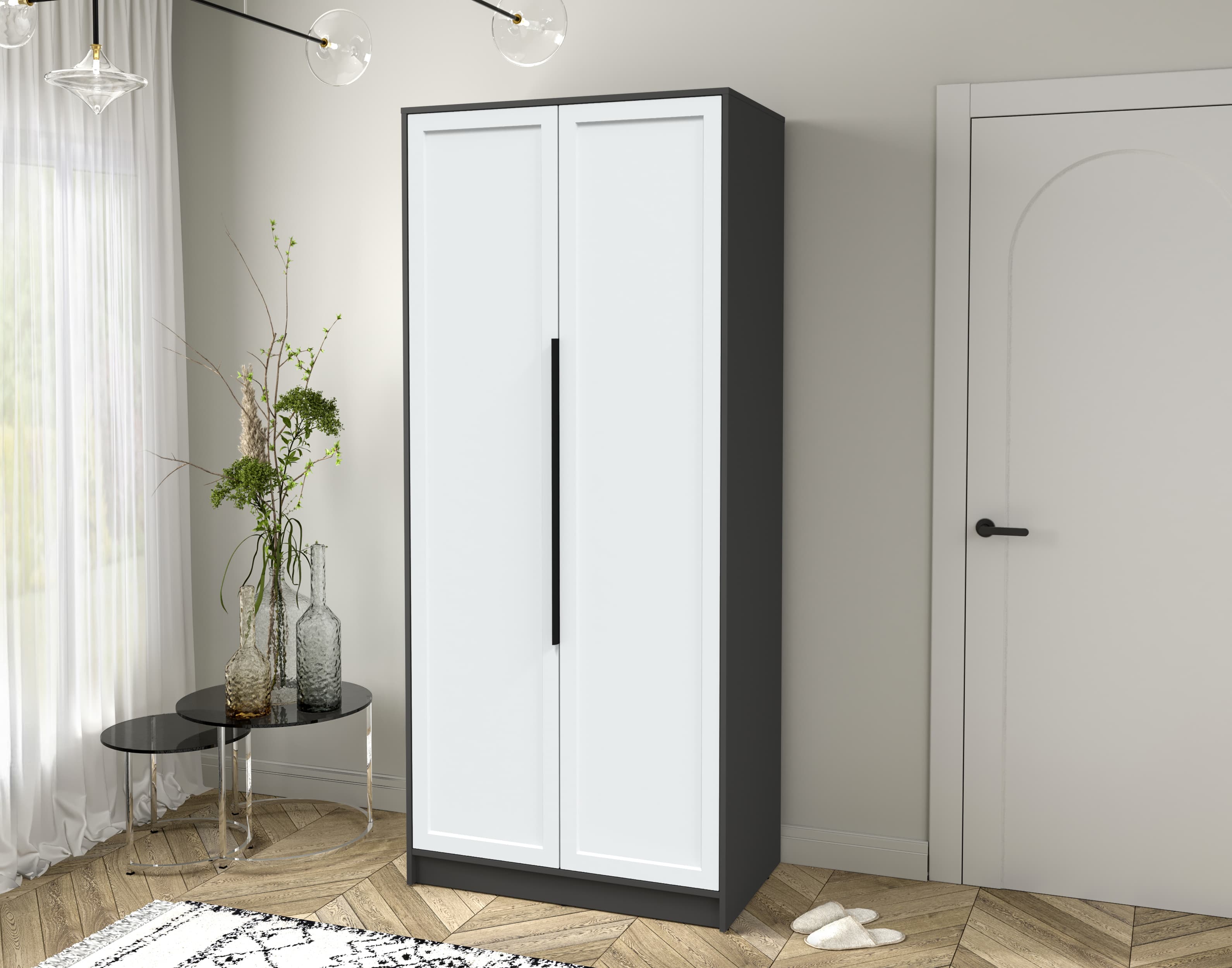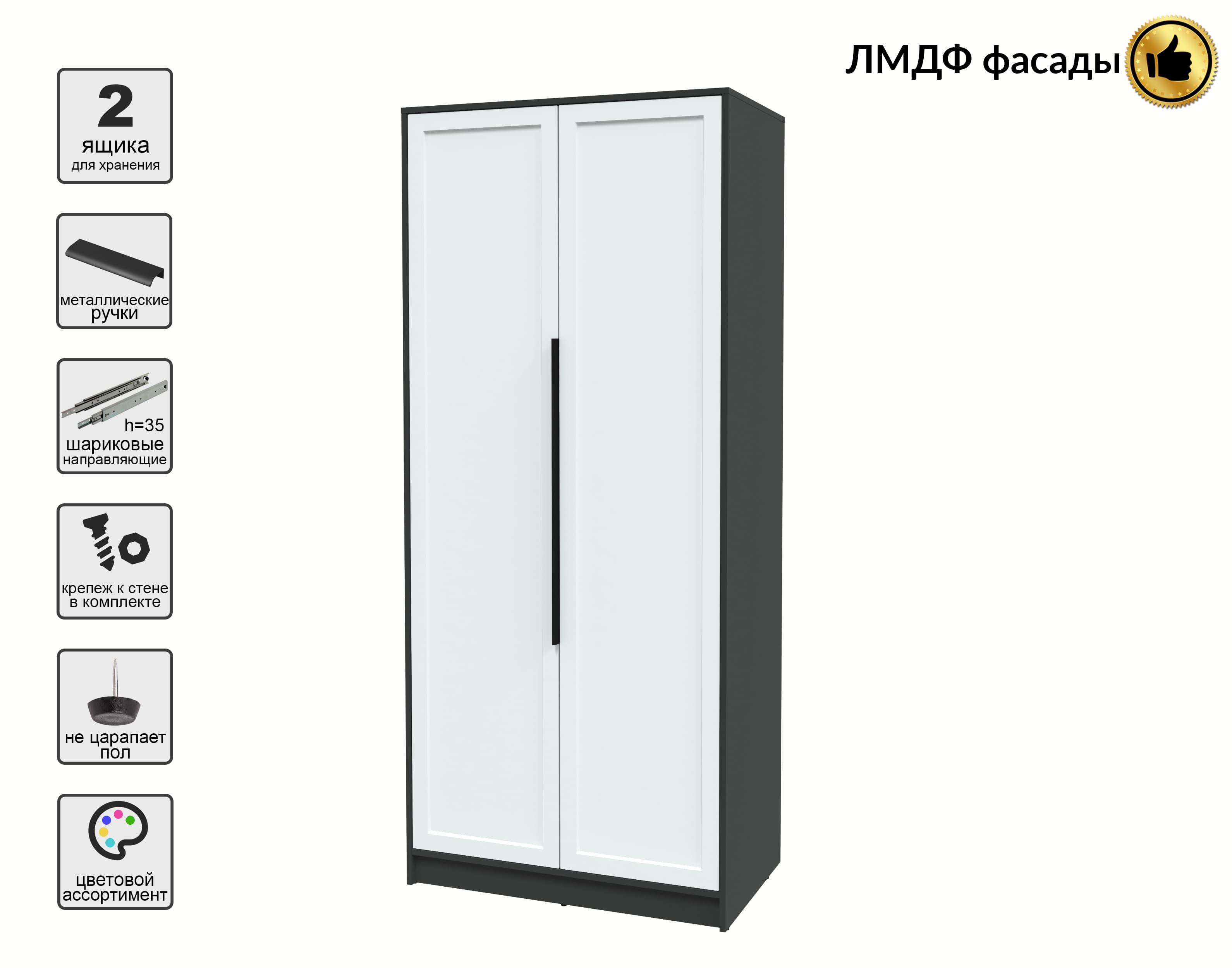 Шкаф распашной Тренд КТ-Ш2 (Антрацит ЛДСП/ Белый ЛМДФ) Ш918 В2128 Г547