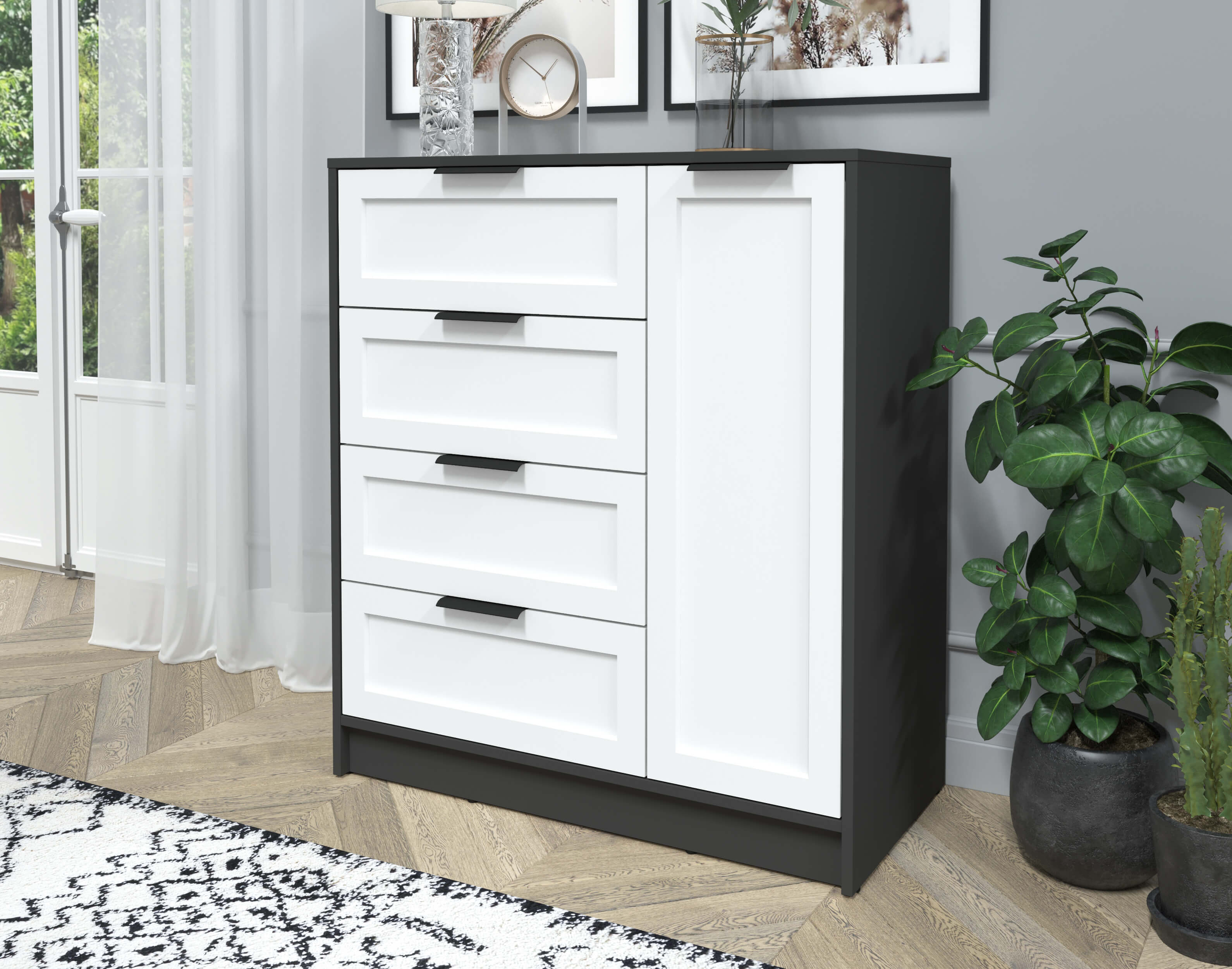 Тумба Тренд КТ-Т90 (Антрацит ЛДСП/ Белый ЛМДФ) Ш900 В1020 Г451