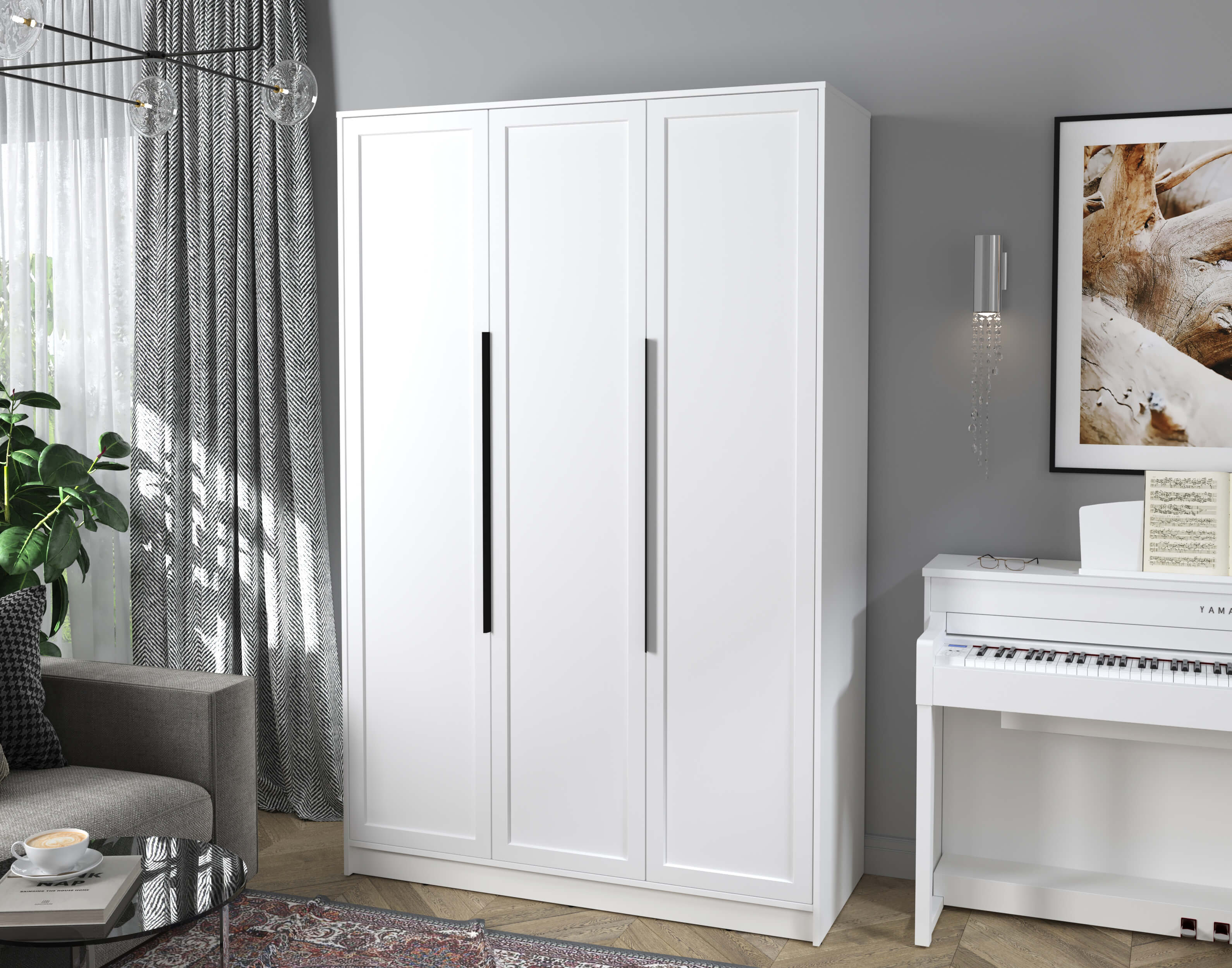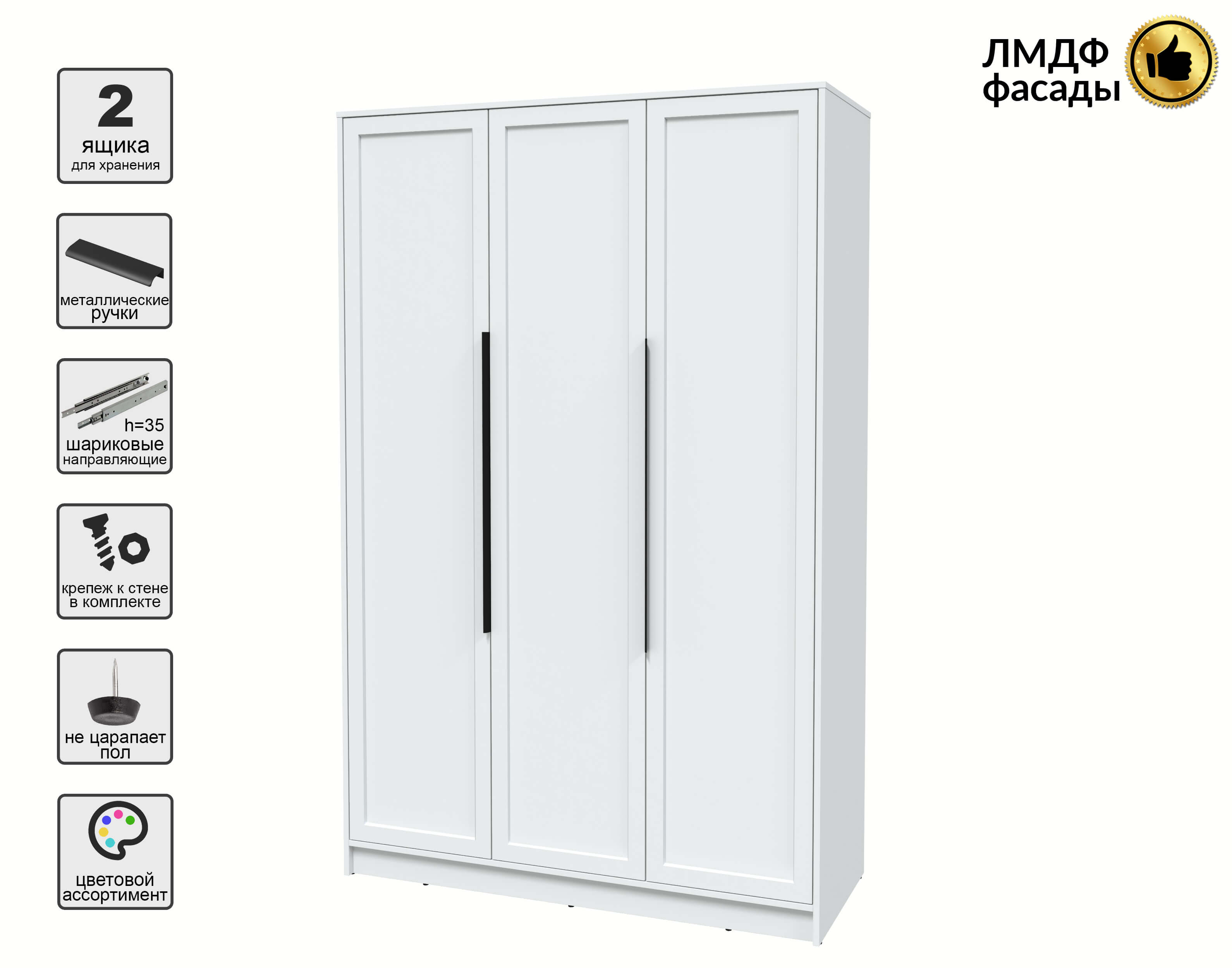 Шкаф распашной Тренд КТ-Ш3 (Белый платинум ЛДСП/ Белый ЛМДФ) Ш1360 В2128 Г547