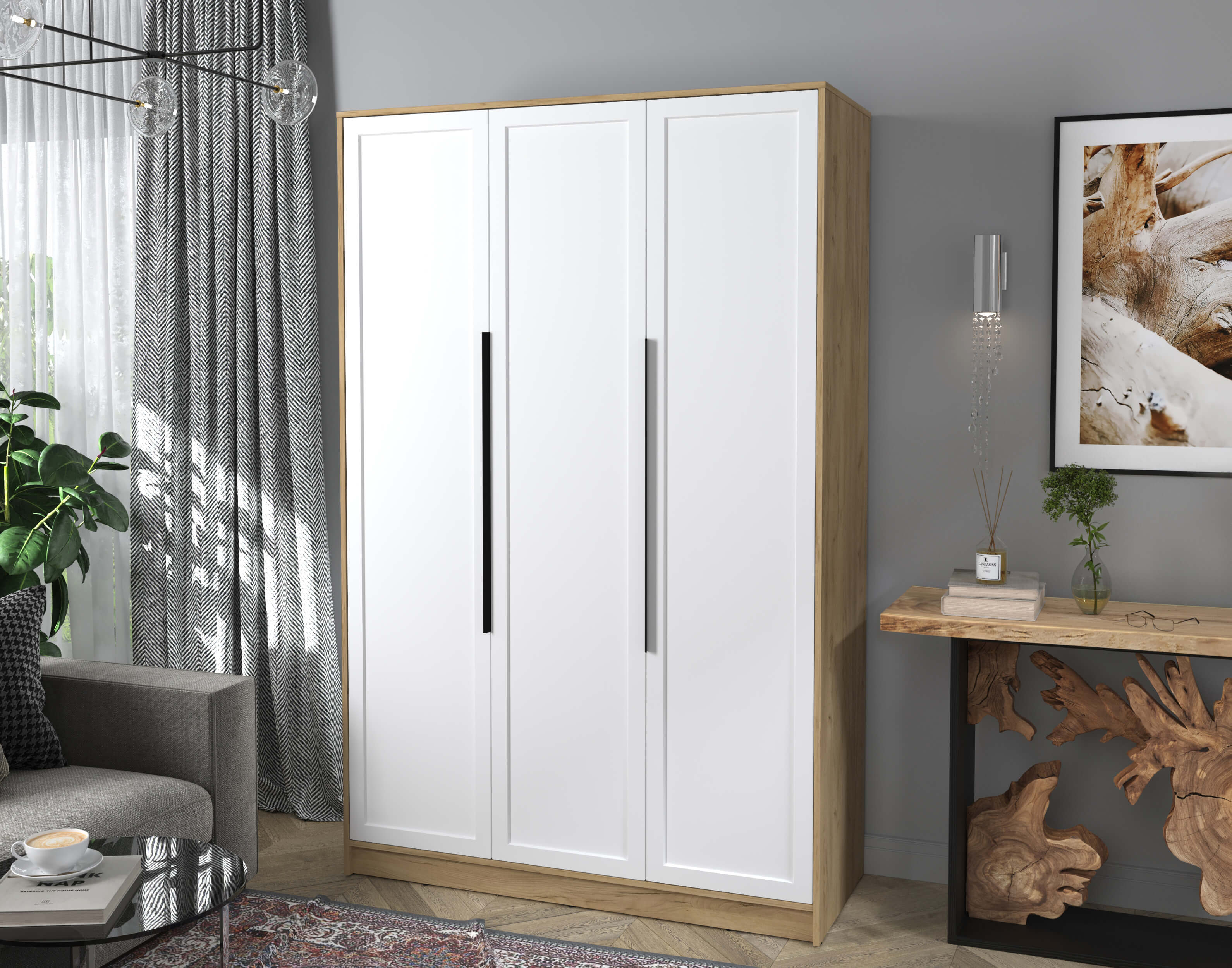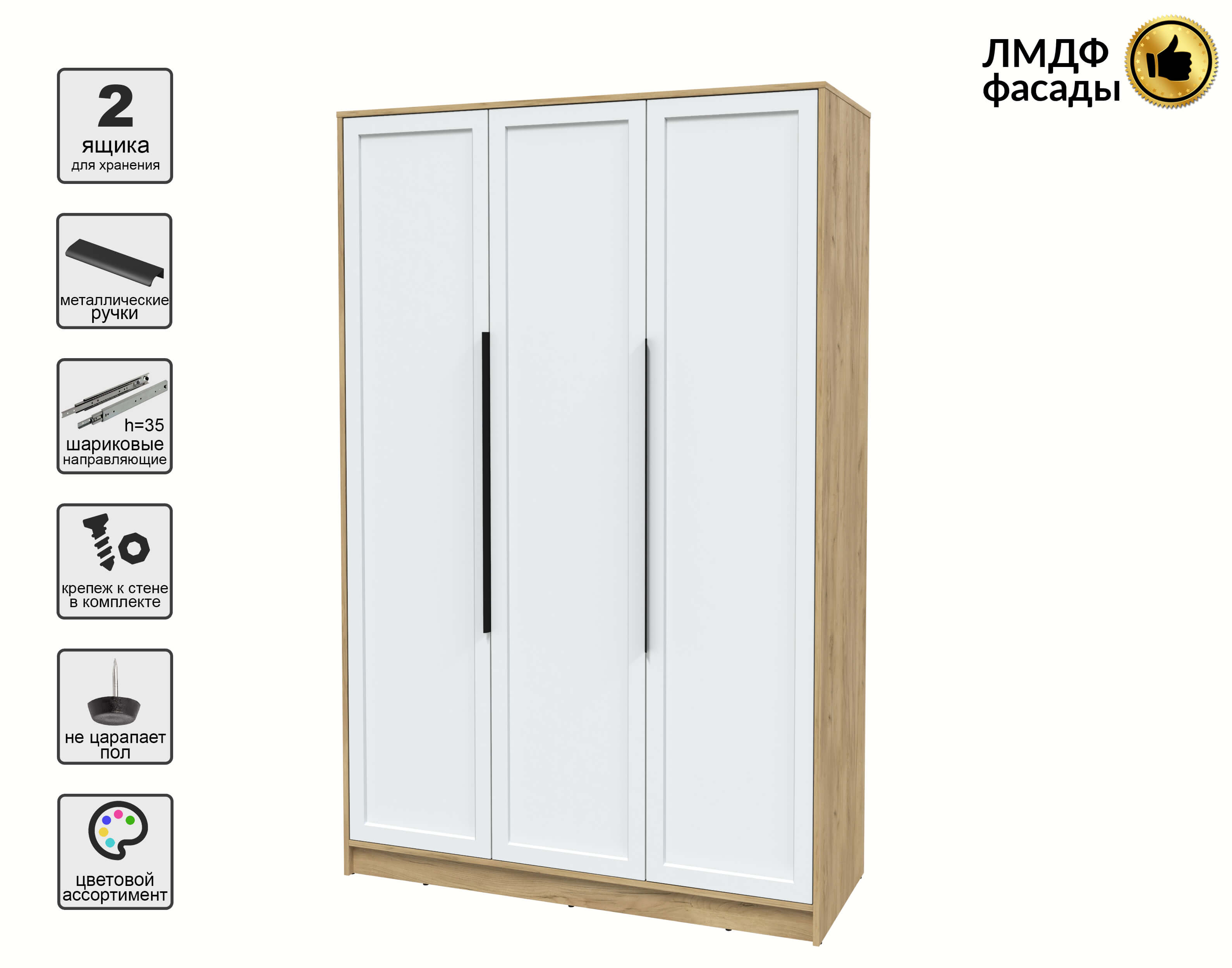 Шкаф распашной Тренд КТ-Ш3 (Дуб золотой ЛДСП/ Белый ЛМДФ) Ш1360 В2128 Г547