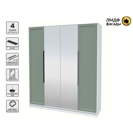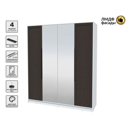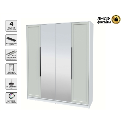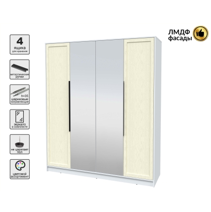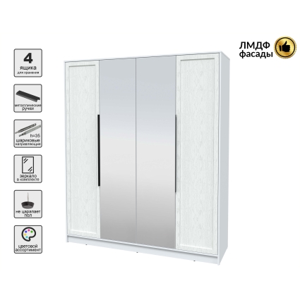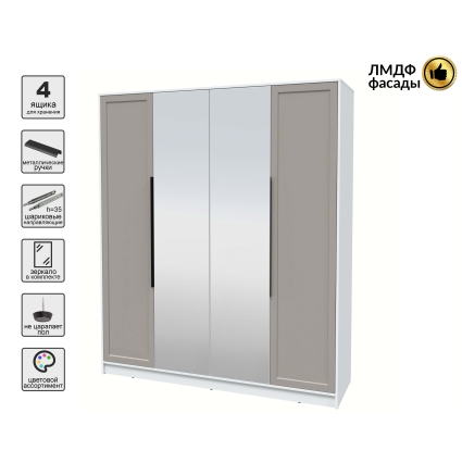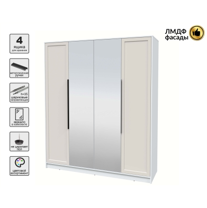 Шкаф распашной Тренд КТ-Ш4 (з) (Белый платинум ЛДСП/ Белый ЛМДФ) Ш1800 В2128 Г547