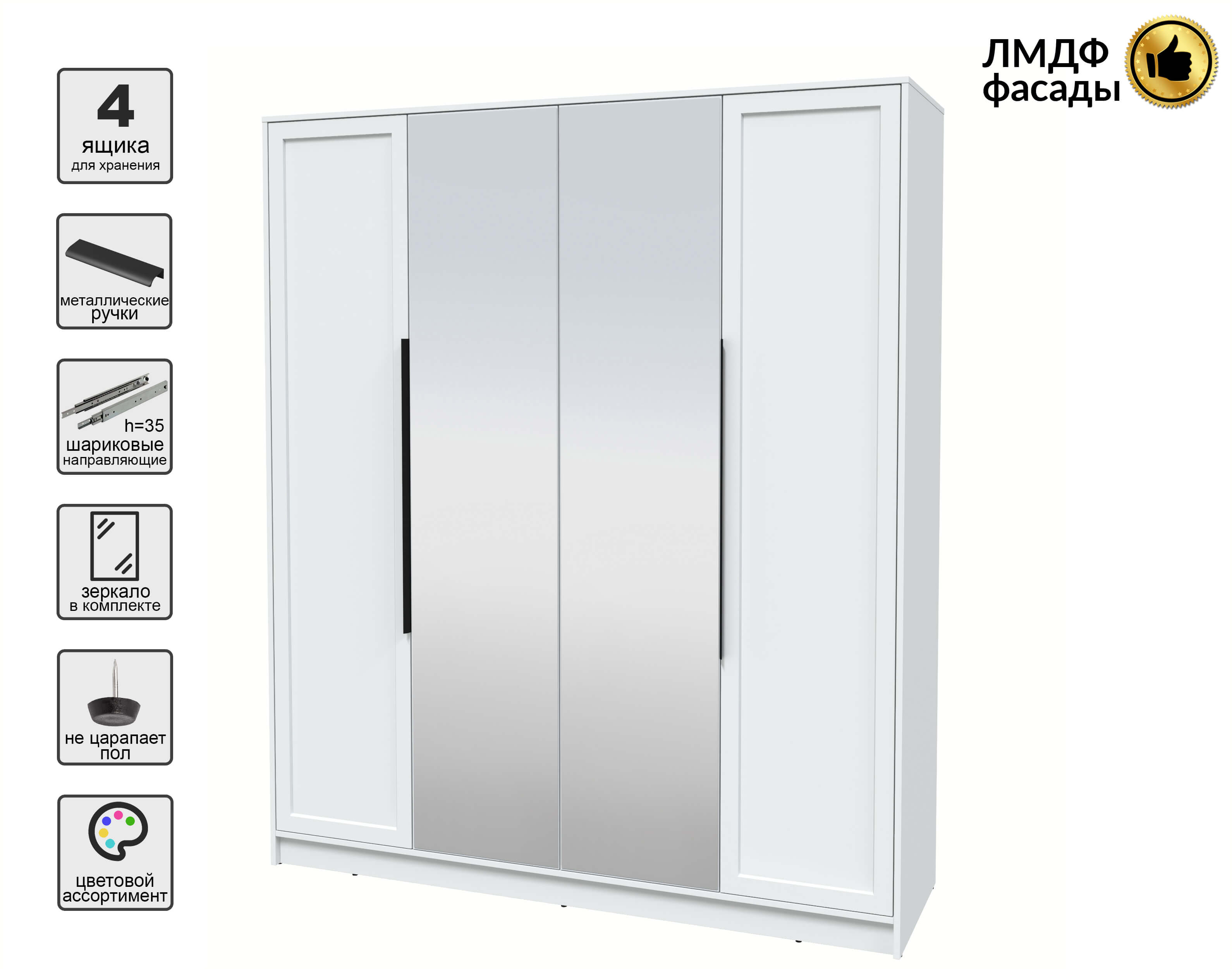 Дверь с зеркалом в моделях с фасадами из ЛМДФ будет выполняться из ЛДСП в цвет корпуса.