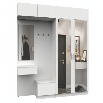 Простая и компактная прихожая вместительна и функциональна, позволит разместить все необходимые вещи: обувь, верхнюю одежду, головные уборы и различные мелкие вещи. Благодаря гармоничному сочетанию цветов прихожая создаст в вашей квартире ощущение уюта, тепла и комфорта.