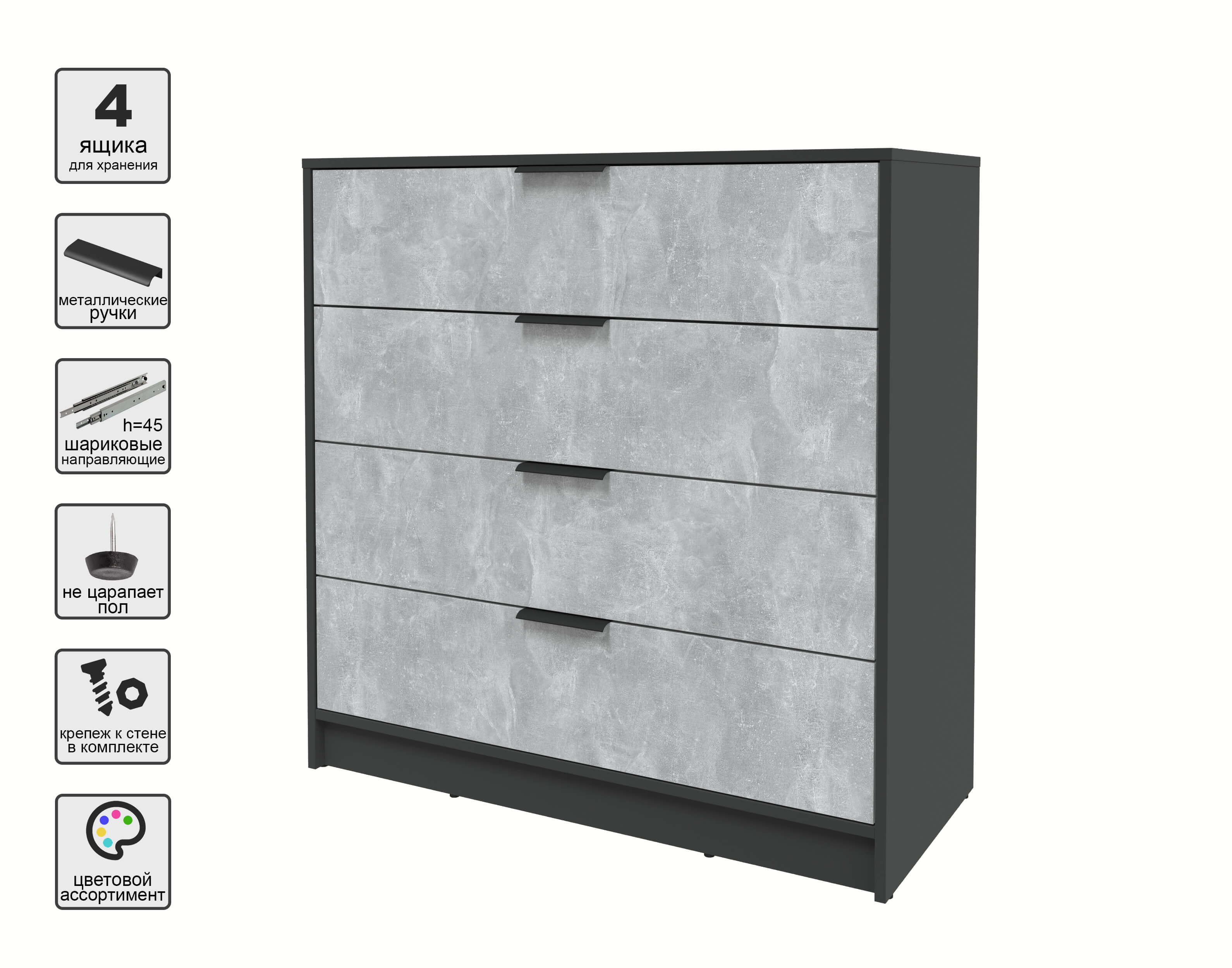 Kомод КТ-К100 (Антрацит ЛДСП/ Бетон ЛДСП) Ш1000 В1020 Г451