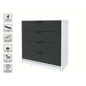 Kомод КТ-К100 (Белый ЛДСП/ Антрацит ЛДСП) Ш1000 В1020 Г451