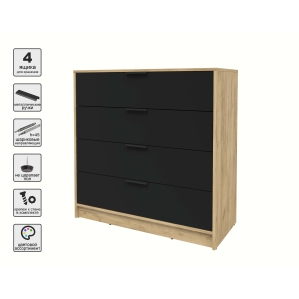 Kомод КТ-К100 (Дуб золотой ЛДСП/ Черный ЛДСП) Ш1000 В1020 Г451