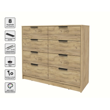 Kомод КТ-К117 (Дуб золотой ЛДСП/ Бетон лайт ЛДСП) Ш1165 В1020 Г451