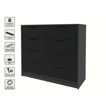 Kомод КТ-К117 (Дуб золотой ЛДСП/ Черный ЛДСП) Ш1165 В1020 Г451