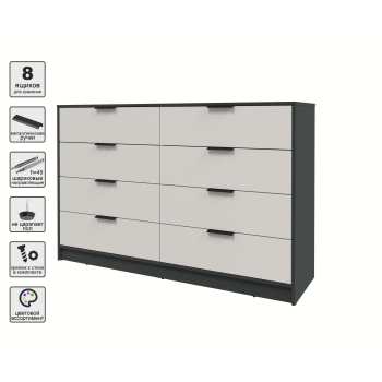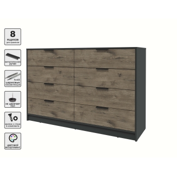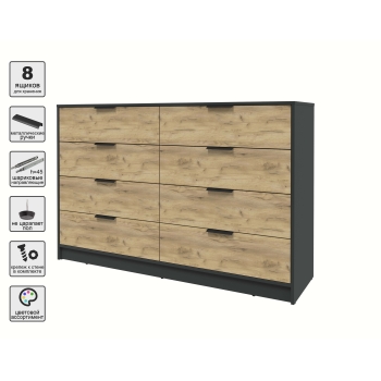 Kомод КТ-К157 (Антрацит ЛДСП/ Дуб нокс ЛДСП) Ш1565 В1020 Г451