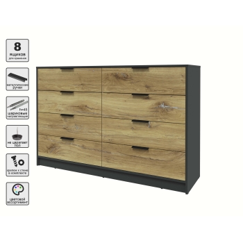 Kомод КТ-К157 (Антрацит ЛДСП/ Серый ЛДСП) Ш1565 В1020 Г451