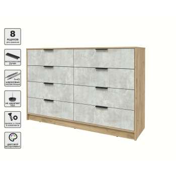Kомод КТ-К157 (Белый ЛДСП/ Бетон лайт ЛДСП) Ш1565 В1020 Г451