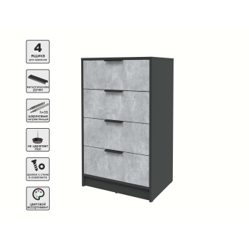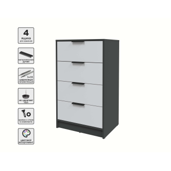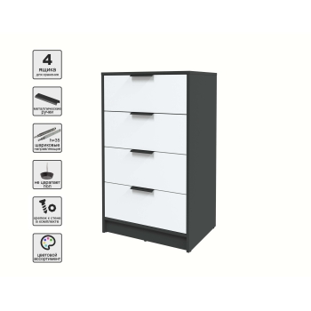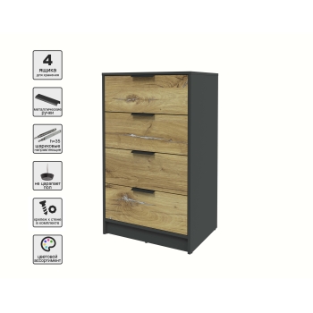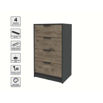 Kомод КТ-К60 (Антрацит ЛДСП/ Дуб белый ЛДСП) Ш600 В1020 Г451