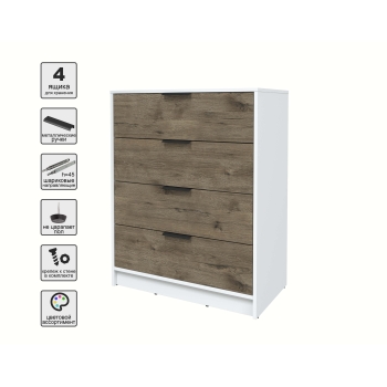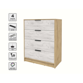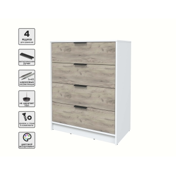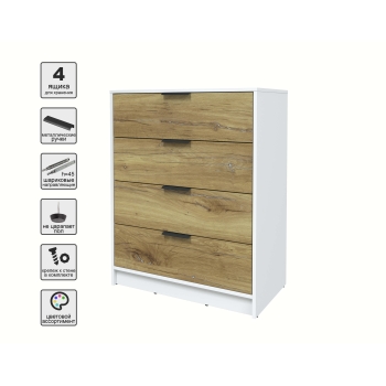 Kомод КТ-К80 (Белый ЛДСП/ Дуб белый ЛДСП) Ш800 В1020 Г451