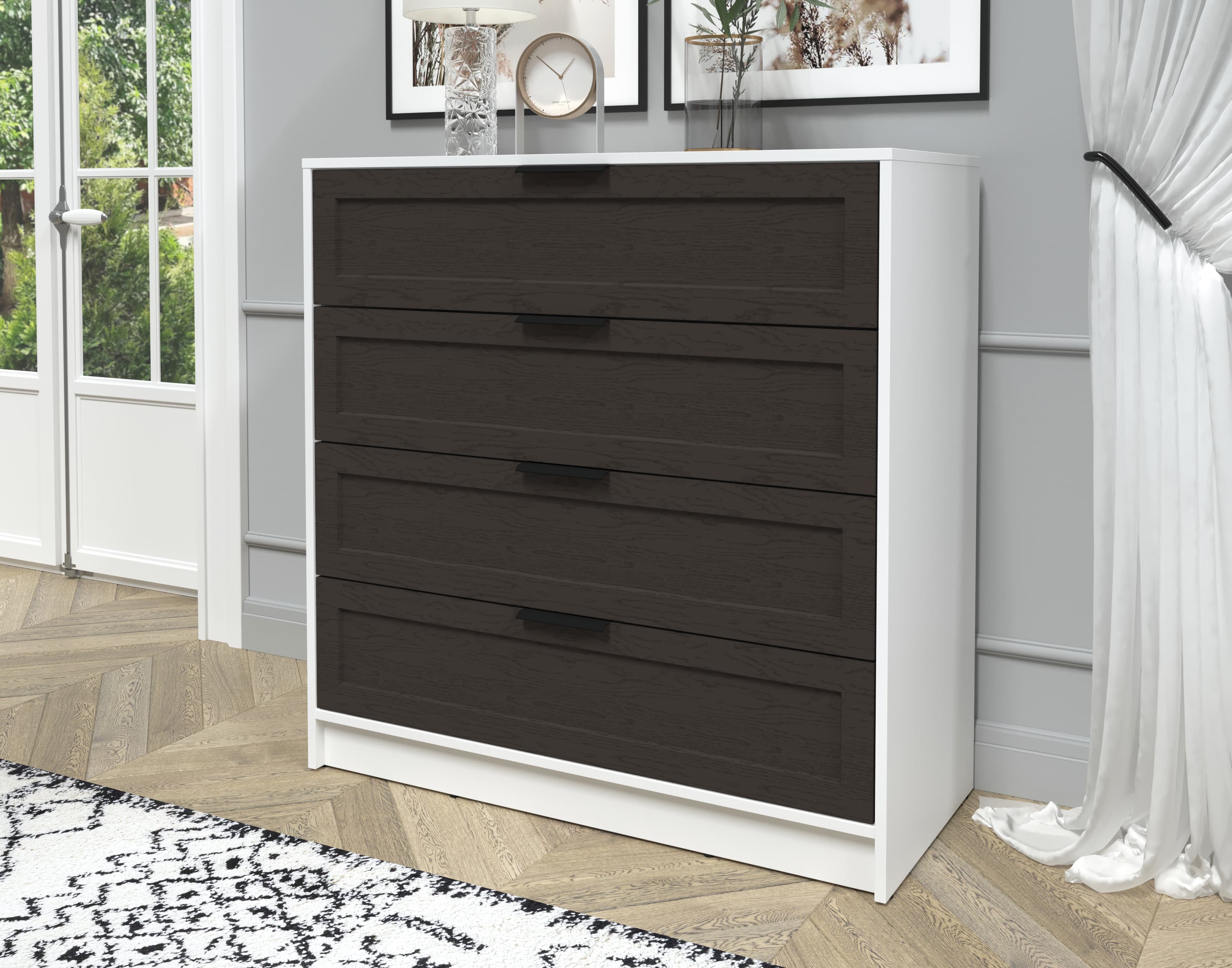 Kомод Тренд КТ-К100 (Белый ЛДСП/ Дуб английский ЛМДФ) Ш1000 В1020 Г451