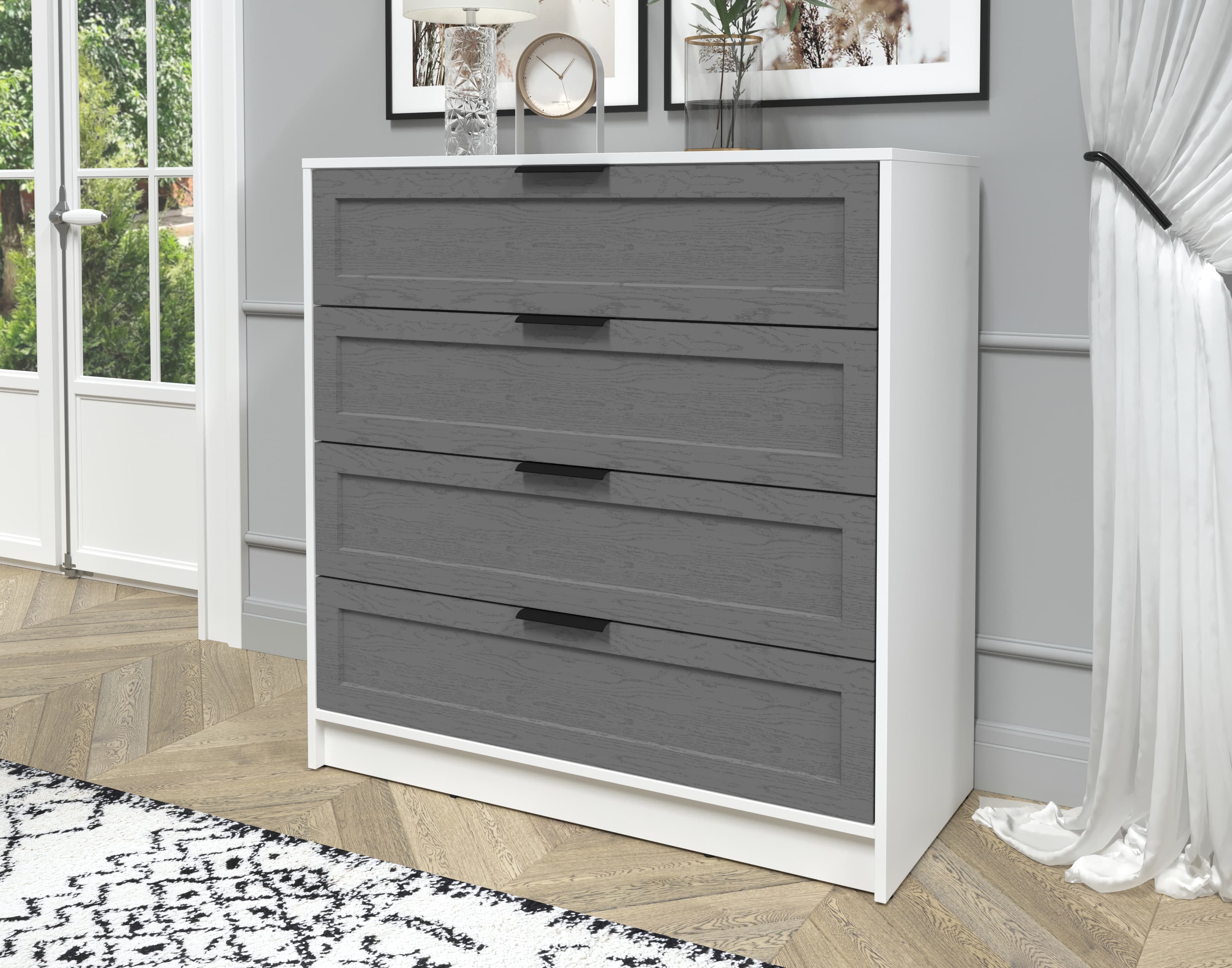 Kомод Тренд КТ-К100 (Белый ЛДСП/ Дуб серый ЛМДФ) Ш1000 В1020 Г451
