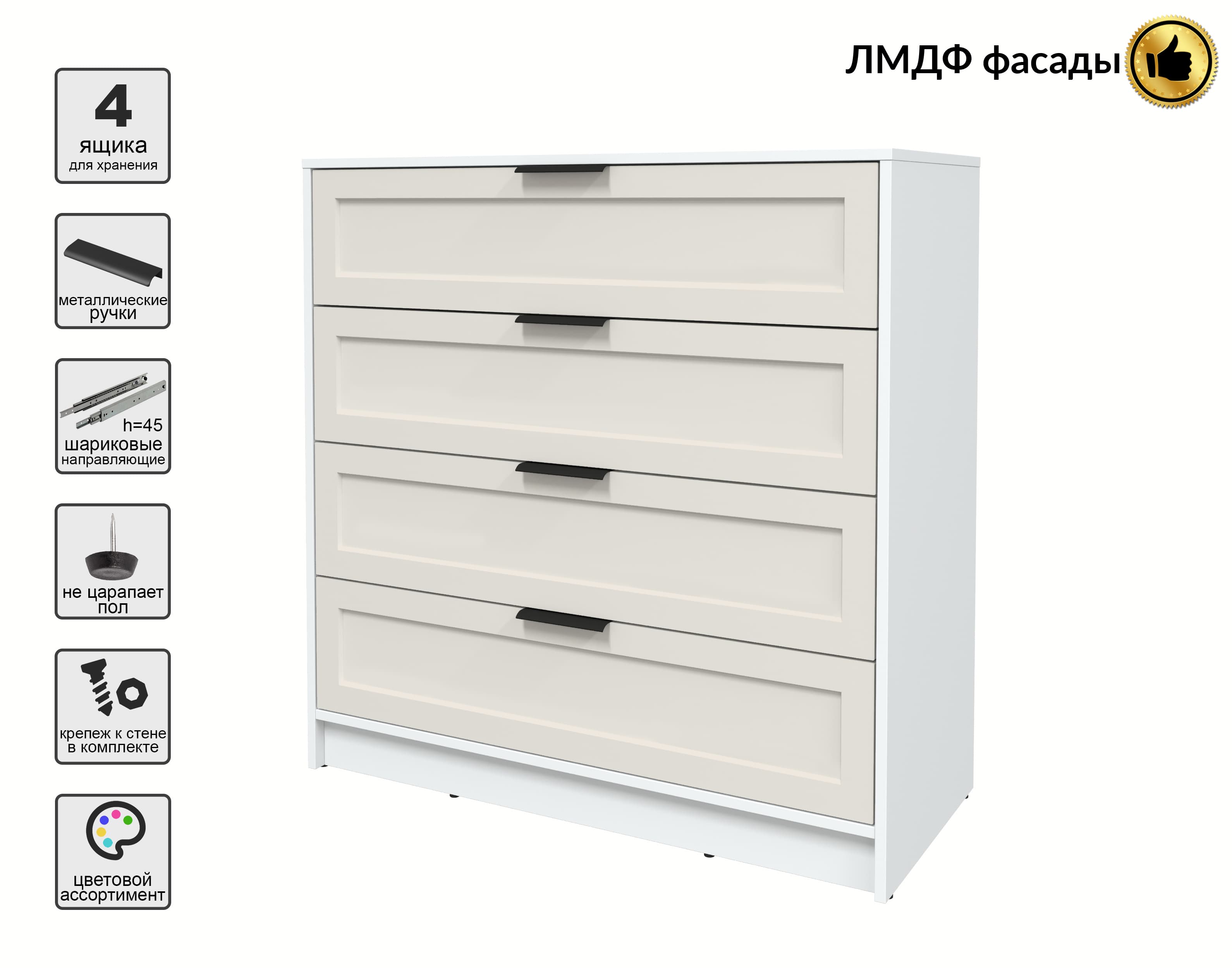 Kомод Тренд КТ-К100 (Белый ЛДСП/ Кашемир ЛМДФ) Ш1000 В1020 Г451