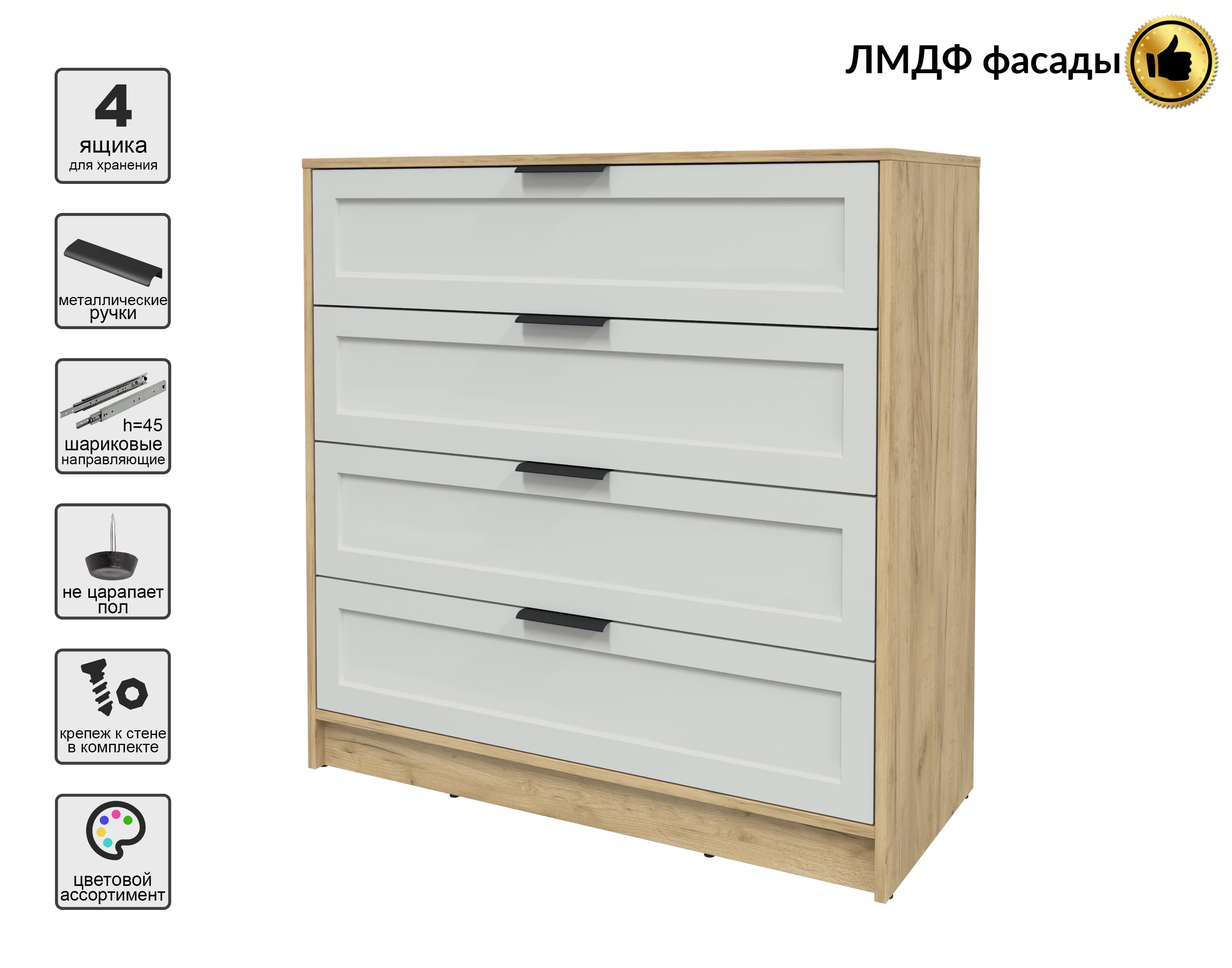 Kомод Тренд КТ-К100 (Дуб золотой ЛДСП/ Грэй ЛМДФ) Ш1000 В1020 Г451