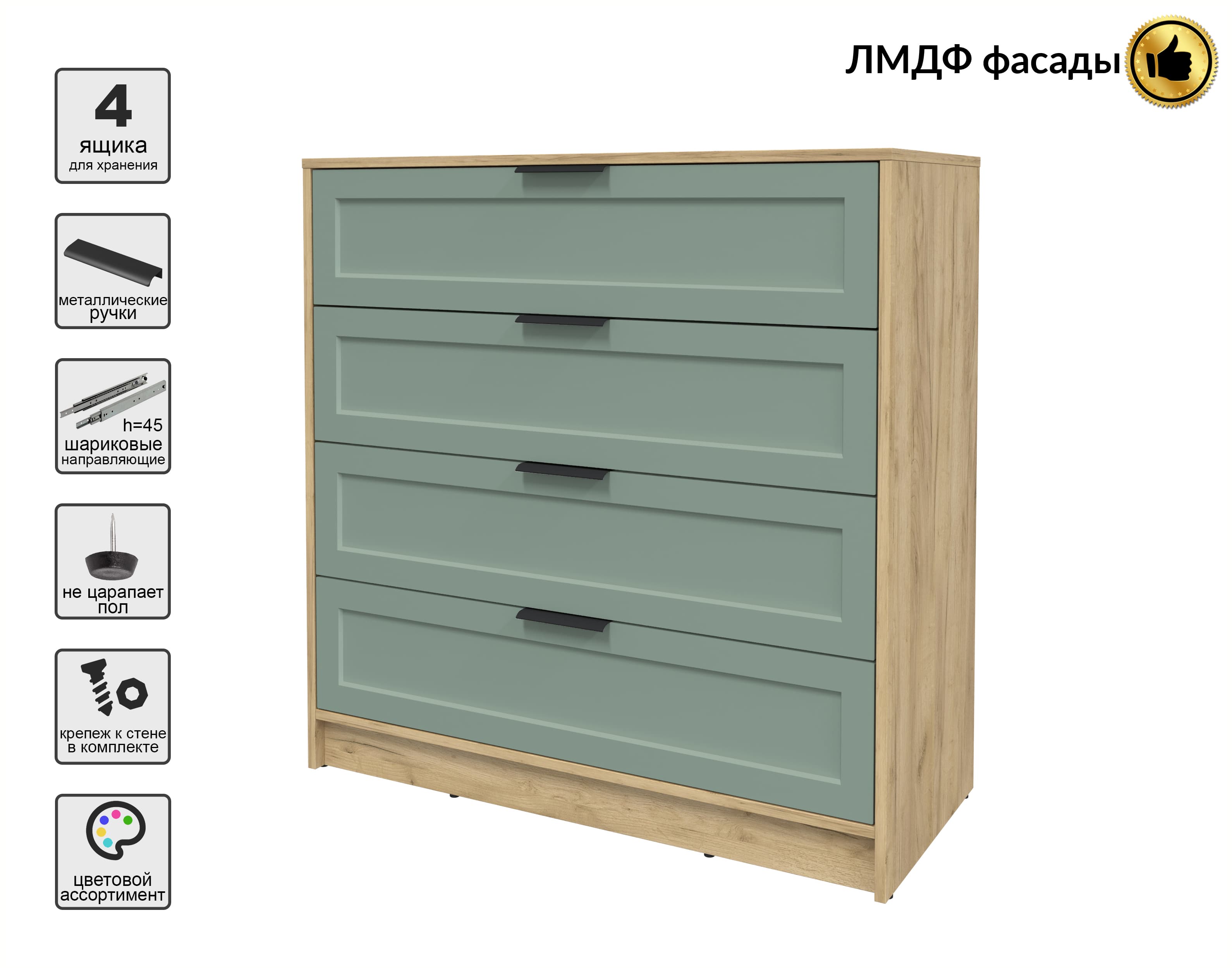 Kомод Тренд КТ-К100 (Дуб золотой ЛДСП/ Мята ЛМДФ) Ш1000 В1020 Г451